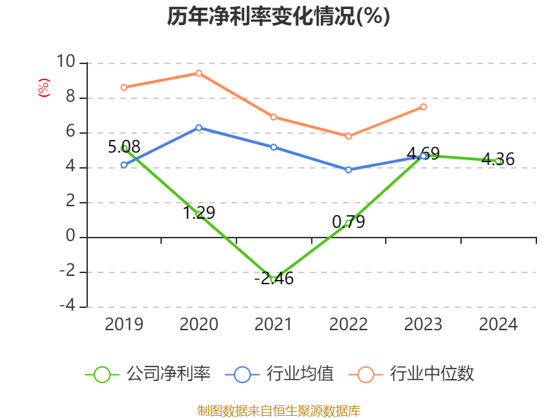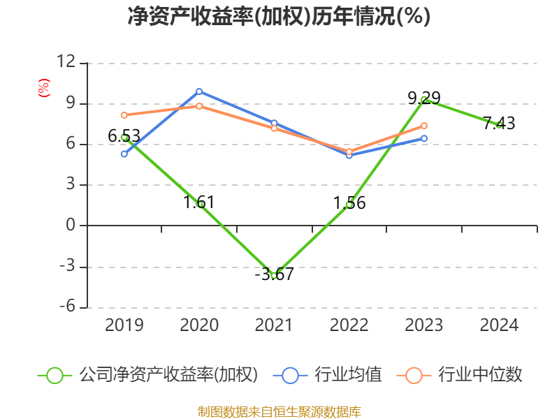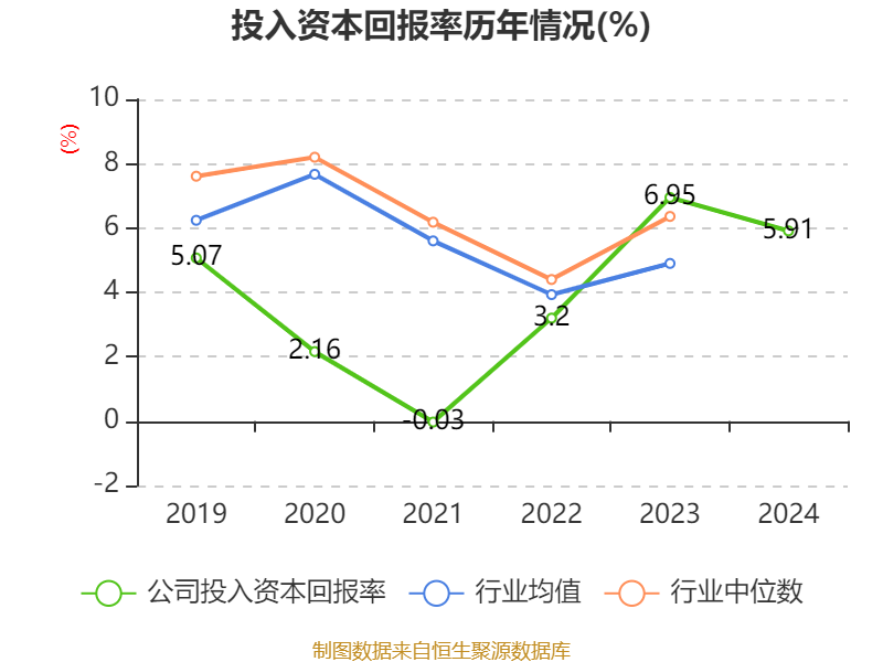 数据显示,2024年公司加权平均净资产收益率为7.43%,较上年同期下降1.86个百分点。公司2024年投入资本回报率为5.91%,较上年同期下降1.04个百分点。