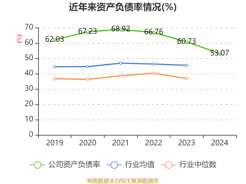 负债重大变化方面,截至2024年末,公司长期借款较上年末减少83.51%,占公司总资产比重下降4.57个百分点;一年内到期的非流动负债较上年末减少39.47%,占公司总资产比重下降4.49个百分点;应付票据及应付账款较上年末增加13.02%,占公司总资产比重上升4.19个百分点;长期应付款合计较上年末减少64.06%,占公司总资产比重下降3.52个百分点。