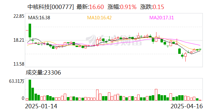 4月15日,中核科技(000777)公布2024年年报,公司营业收入为18.4亿元,同比上升1.9%;归母净利润为2.29亿元,同比上升3.3%;扣非归母净利润为2.11亿元,同比上升9.3%;经营现金流净额为1.07亿元,同比增长325.7%;EPS(全面摊薄)为0.5981元。