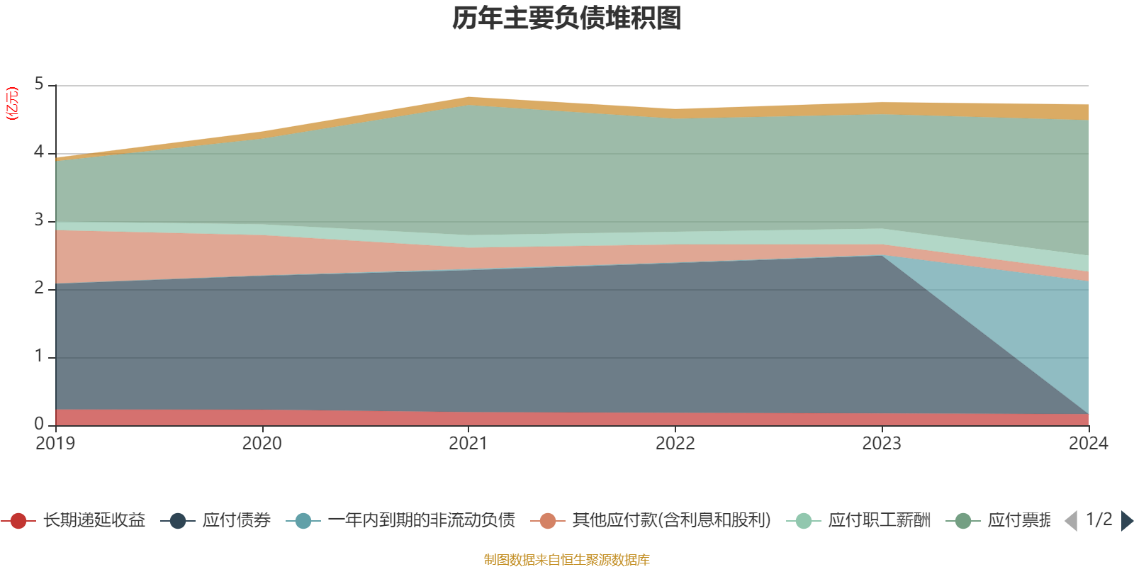 负债重大变化方面,截至2024年末,公司应付债券较上年末减少100%,占公司总资产比重下降17.86个百分点;一年内到期的非流动负债较上年末增加14078.13%,占公司总资产比重上升13.88个百分点;应付票据及应付账款较上年末增加18.4%,占公司总资产比重上升1.29个百分点;短期借款较上年末增加1055.98%,占公司总资产比重上升0.6个百分点。