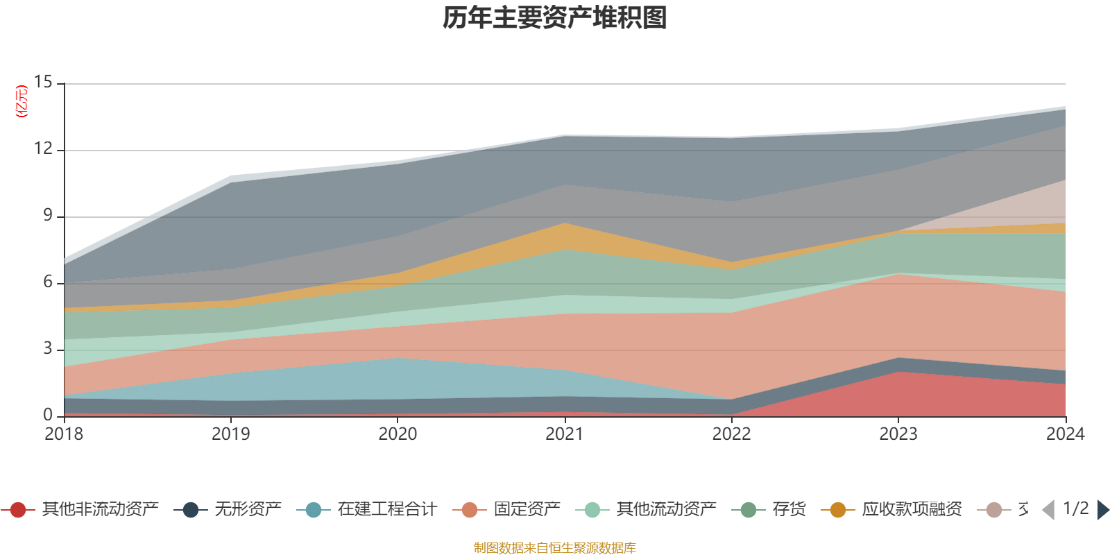 资产重大变化方面,截至2024年末,公司交易性金融资产合计占公司总资产的13.91%,上年末为0;货币资金较上年末减少57.03%,占公司总资产比重下降7.93个百分点;其他非流动资产较上年末减少28.4%,占公司总资产比重下降5.17个百分点;应收票据及应收账款较上年末减少11.56%,占公司总资产比重下降3.78个百分点。