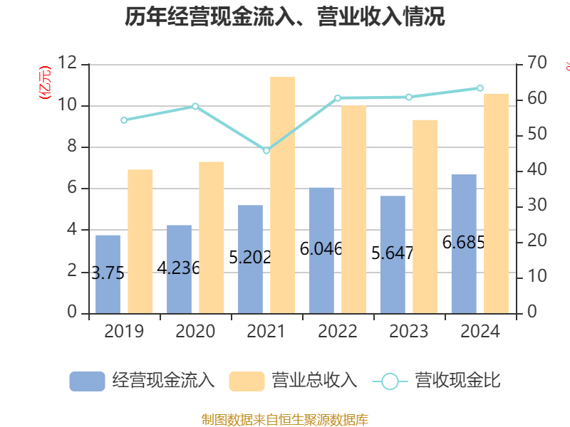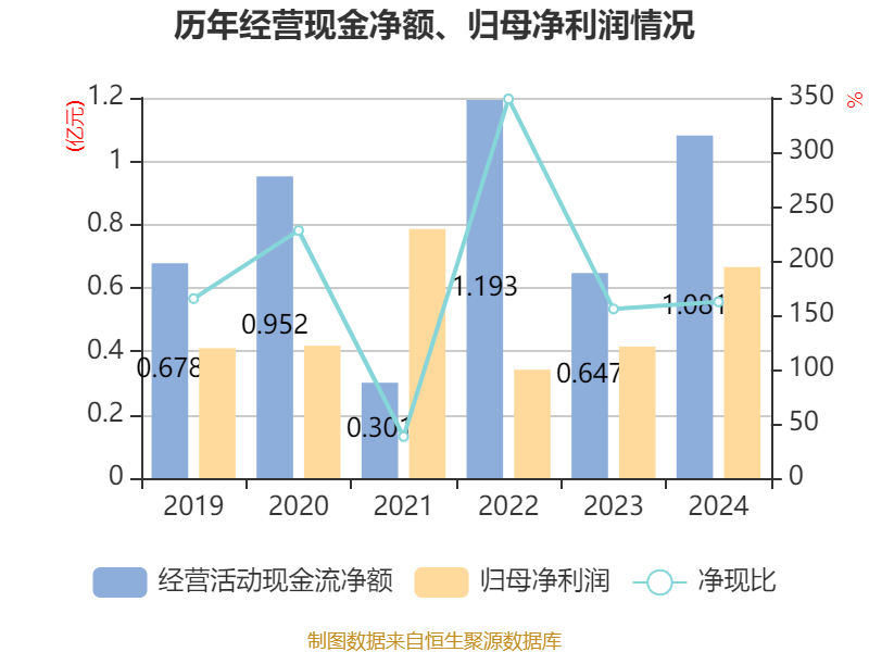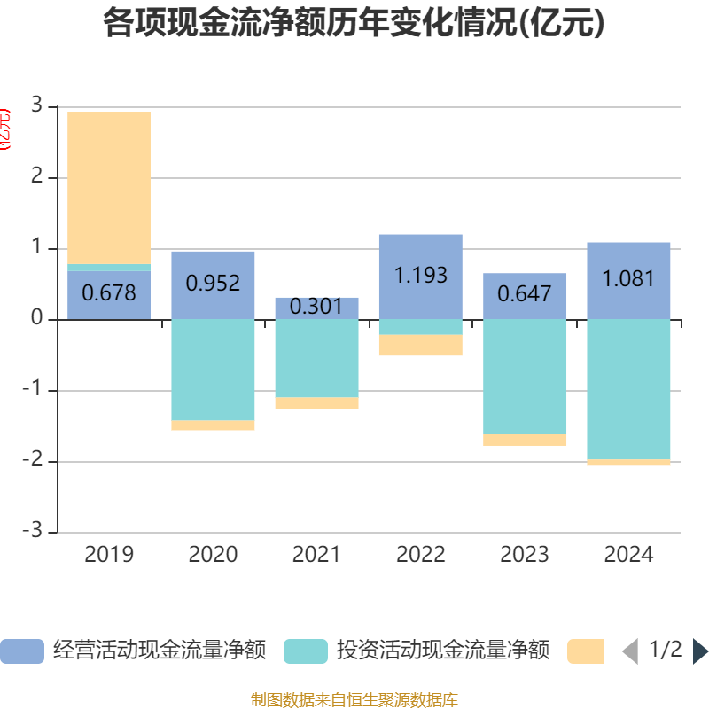 截至2024年,公司经营活动现金流净额为1.08亿元,同比增长67.17%;筹资活动现金流净额-884.87万元,同比增加735.98万元;投资活动现金流净额-1.98亿元,上年同期为-1.63亿元。