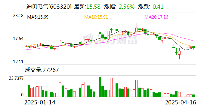 以4月16日收盘价计算,迪贝电气目前市盈率(TTM)约为34.87倍,市净率(LF)约2.51倍,市销率(TTM)约2.2倍。