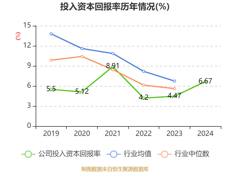 数据显示,2024年公司加权平均净资产收益率为8.1%,较上年同期上升2.67个百分点。公司2024年投入资本回报率为6.67%,较上年同期上升2.2个百分点。