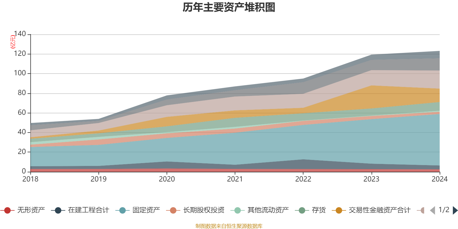 资产重大变化方面,截至2024年末,公司交易性金融资产合计较上年末减少41.82%,占公司总资产比重下降8.6个百分点;固定资产较上年末增加15.69%,占公司总资产比重上升4.6个百分点;应收票据及应收账款较上年末增加18.52%,占公司总资产比重上升1.93个百分点;在建工程合计较上年末减少30.1%,占公司总资产比重下降1.5个百分点。