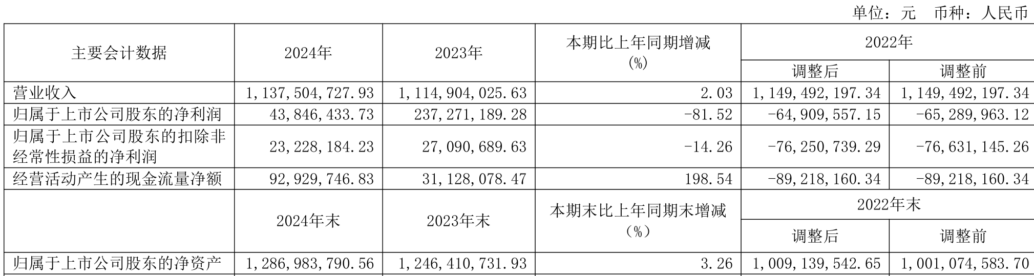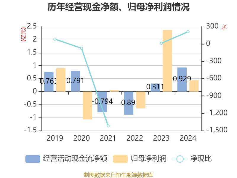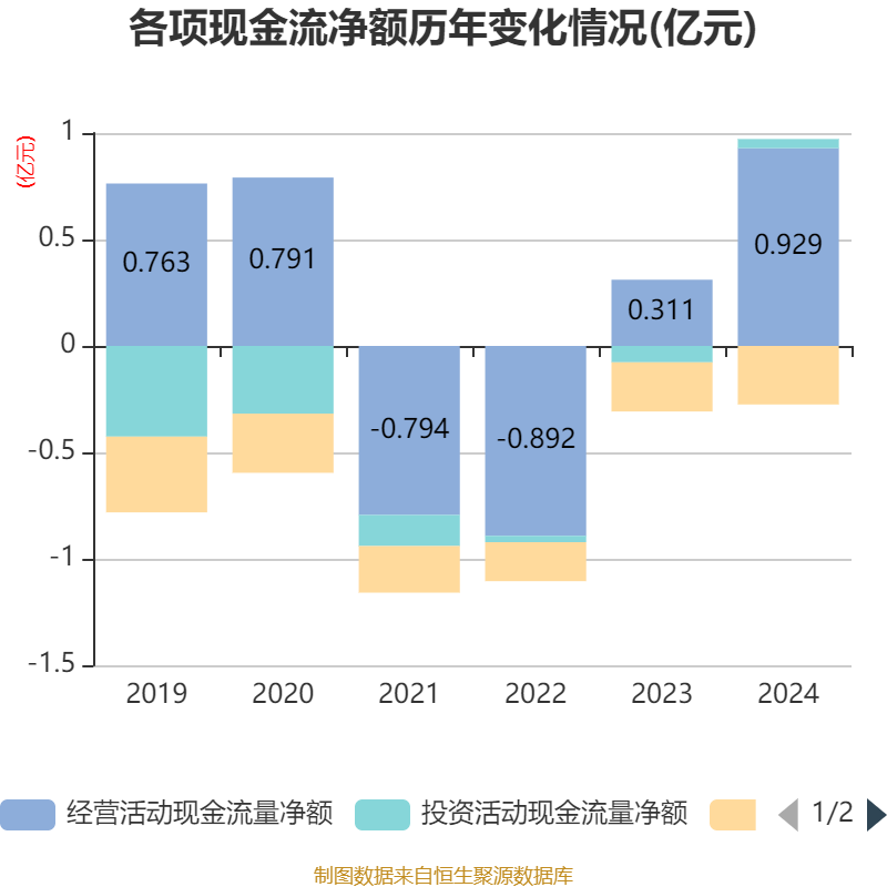 截至2024年,公司经营活动现金流净额为9292.97万元,同比增长198.54%;筹资活动现金流净额-2748.36万元,同比减少442.29万元;投资活动现金流净额427.39万元,上年同期为-773.83万元。