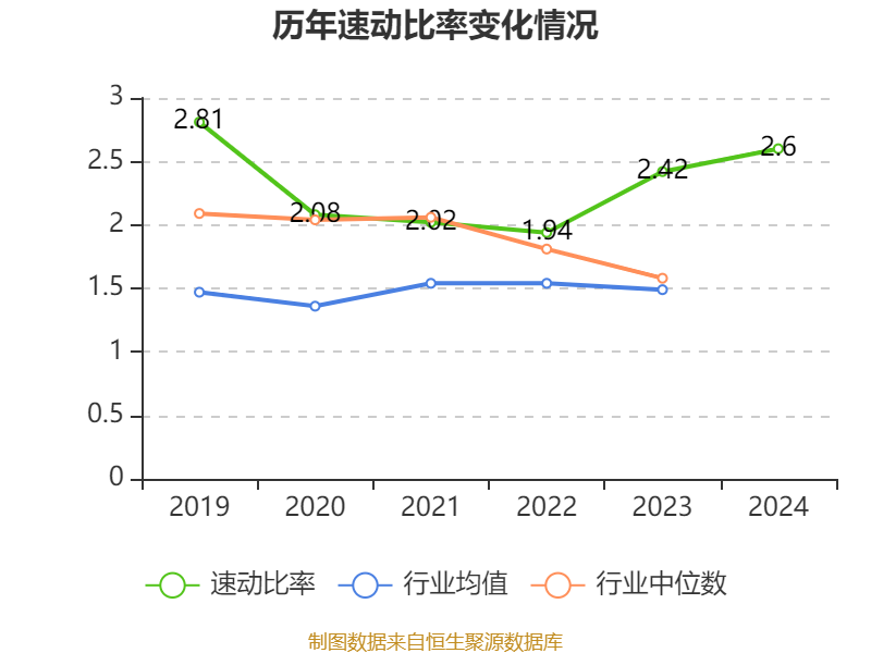 2024年,公司流动比率为2.69,速动比率为2.6。
