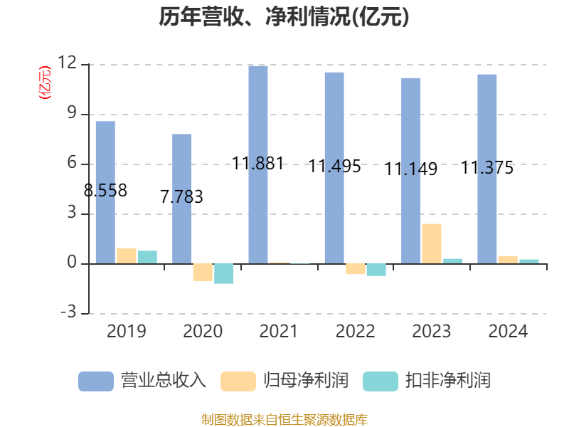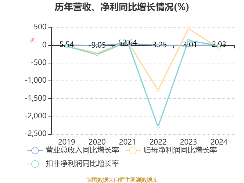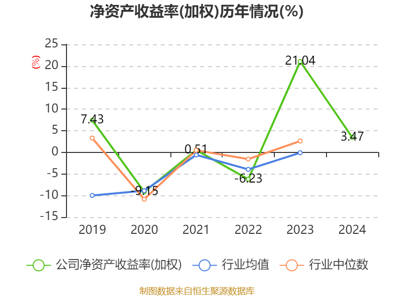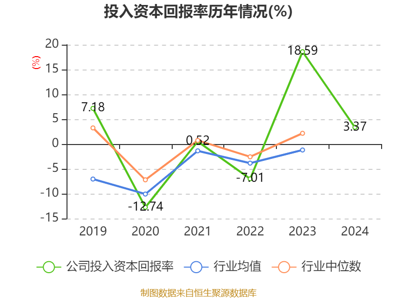 数据显示,2024年公司加权平均净资产收益率为3.47%,较上年同期下降17.57个百分点。公司2024年投入资本回报率为3.37%,较上年同期下降15.22个百分点。