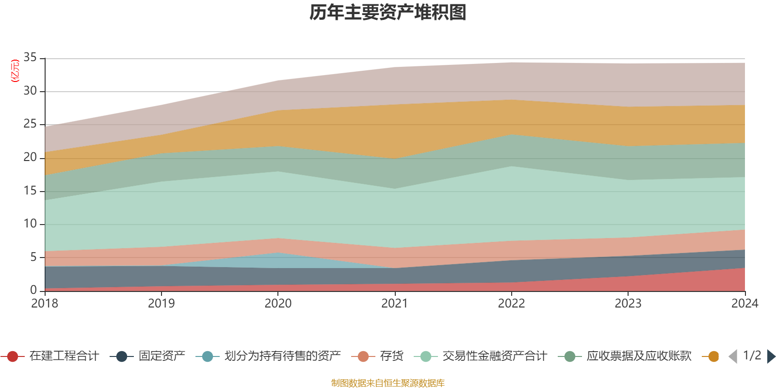 资产重大变化方面,截至2024年末,公司在建工程合计较上年末增加56.72%,占公司总资产比重上升3.64个百分点;交易性金融资产合计较上年末减少8.67%,占公司总资产比重下降2.24个百分点;固定资产较上年末减少10.73%,占公司总资产比重下降0.98个百分点;存货较上年末增加9.37%,占公司总资产比重上升0.74个百分点。