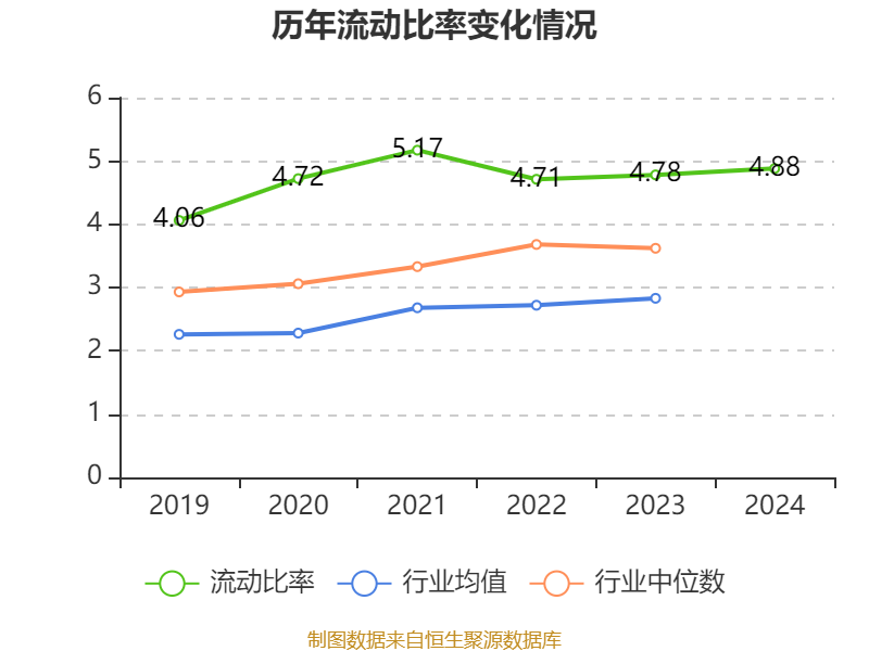 2024年,公司流动比率为4.88,速动比率为4.24。