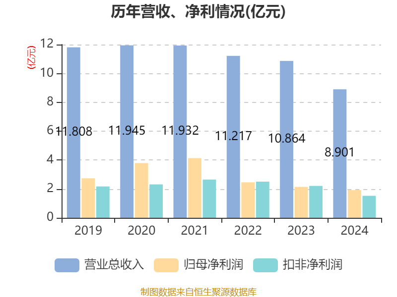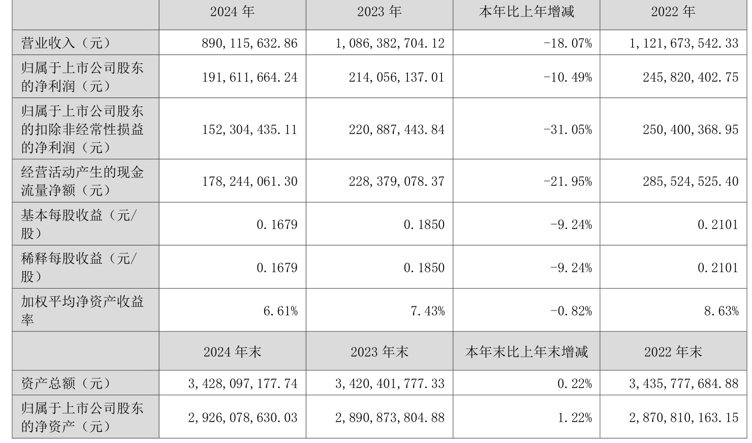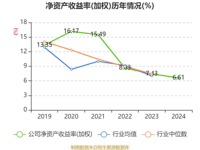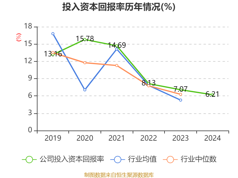 数据显示,2024年公司加权平均净资产收益率为6.61%,较上年同期下降0.82个百分点。公司2024年投入资本回报率为6.21%,较上年同期下降0.86个百分点。