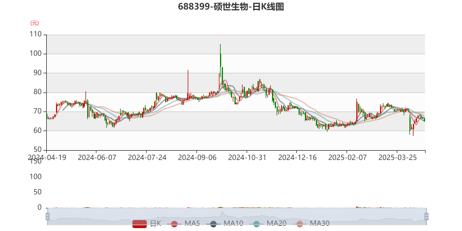 以4月18日收盘价计算,硕世生物目前市盈率(TTM)约为-1840.22倍,市净率(LF)约1.13倍,市销率(TTM)约10.54倍。