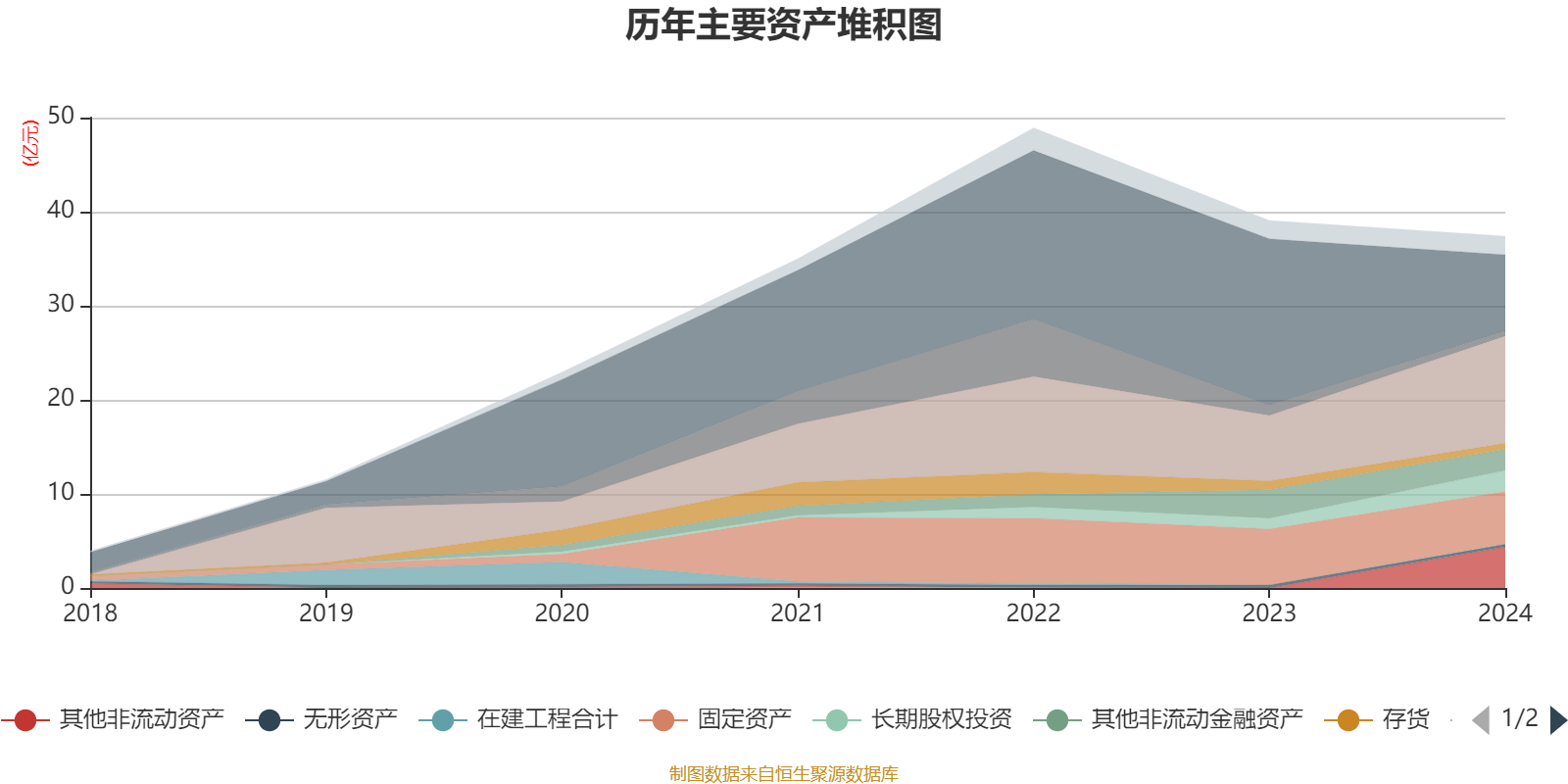资产重大变化方面,截至2024年末,公司货币资金较上年末减少54.19%,占公司总资产比重下降23.62个百分点;交易性金融资产合计较上年末增加63.76%,占公司总资产比重上升12.64个百分点;其他非流动资产较上年末增加277696.09%,占公司总资产比重上升11.66个百分点;长期股权投资较上年末增加95.32%,占公司总资产比重上升3个百分点。