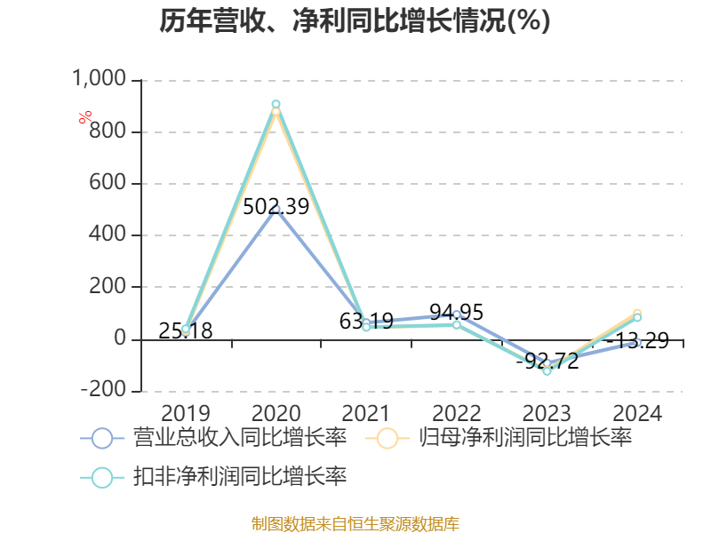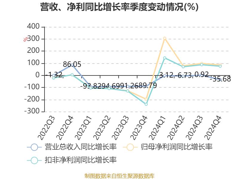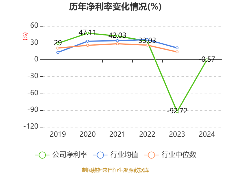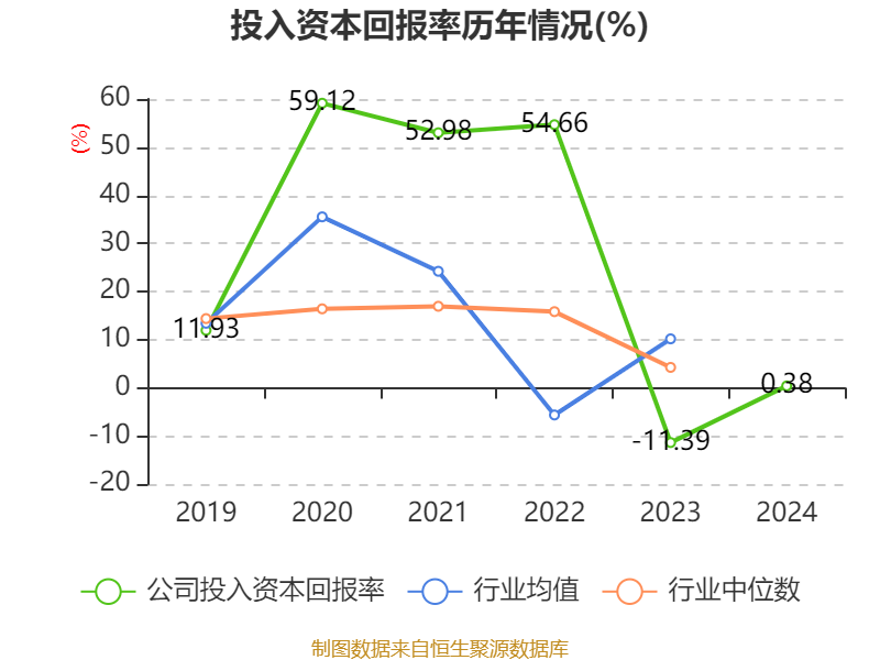 数据显示,2024年公司加权平均净资产收益率为-0.06%,较上年同期上升10.35个百分点。公司2024年投入资本回报率为0.38%,较上年同期上升11.77个百分点。