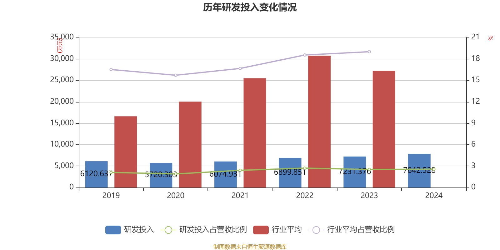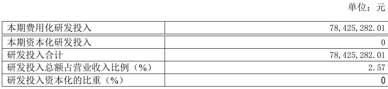 2024年全年,公司研发投入金额为7842.53万元,同比增长8.45%;研发投入占营业收入比例为2.57%,相比上年同期上升0.04个百分点。此外,公司全年研发投入资本化率为0%。