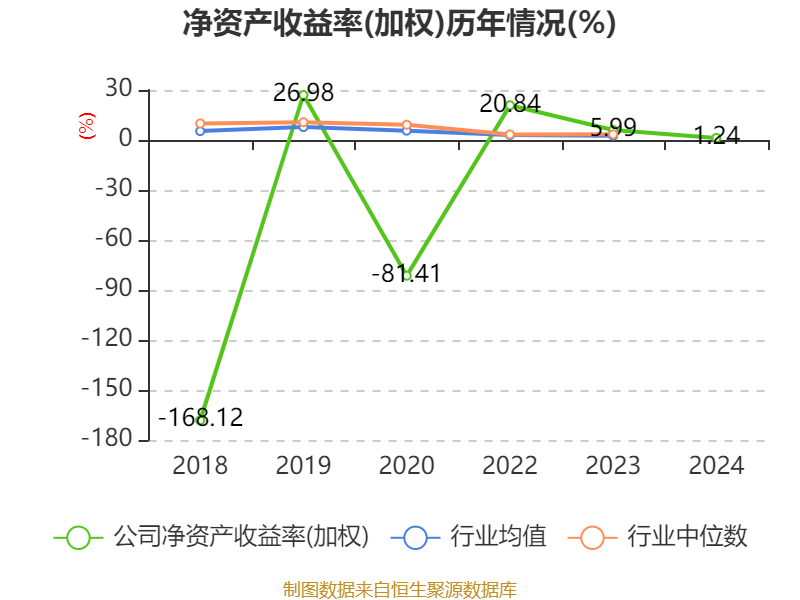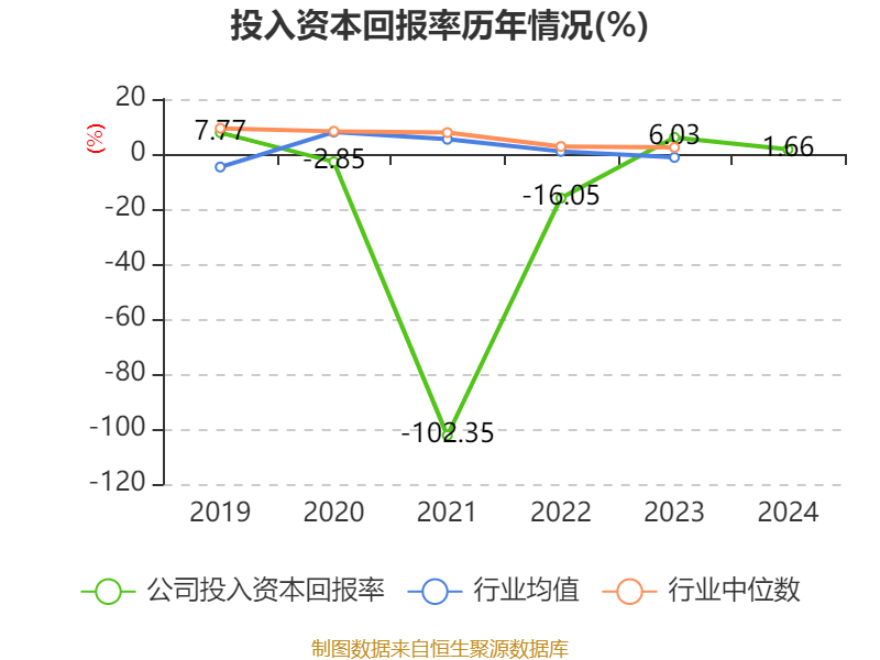 数据显示,2024年公司加权平均净资产收益率为1.24%,较上年同期下降4.75个百分点。公司2024年投入资本回报率为1.66%,较上年同期下降4.37个百分点。