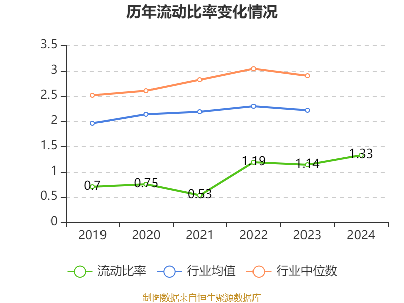 2024年,公司流动比率为1.33,速动比率为1.28。