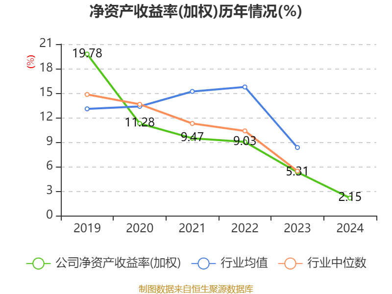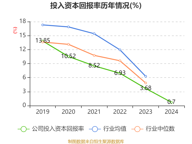 数据显示,2024年公司加权平均净资产收益率为2.15%,较上年同期下降3.16个百分点。公司2024年投入资本回报率为0.7%,较上年同期下降2.98个百分点。