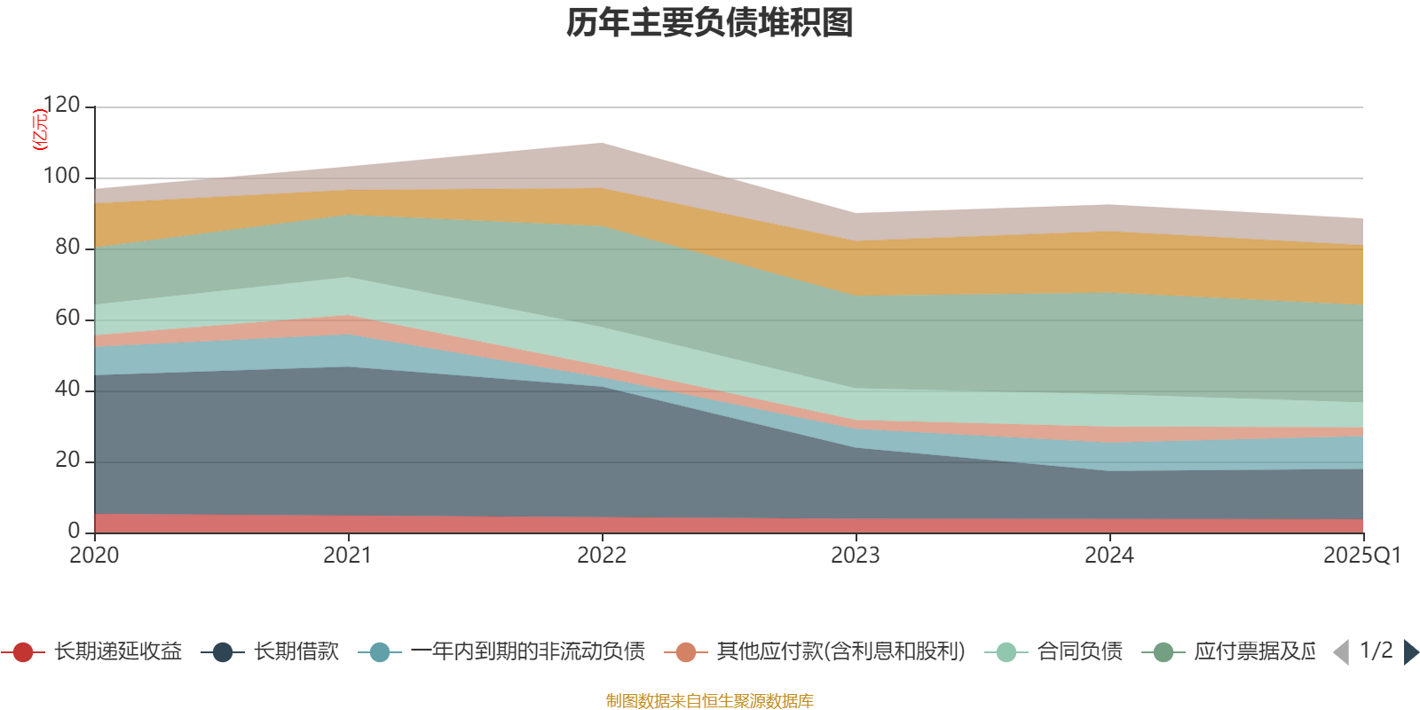 负债重大变化方面,截至2025年一季度末,公司合同负债较上年末减少23.14%,占公司总资产比重下降0.95个百分点;其他应付款(含利息和股利)较上年末减少44.52%,占公司总资产比重下降0.86个百分点;应付票据及应付账款较上年末减少3.96%,占公司总资产比重下降0.71个百分点;一年内到期的非流动负债较上年末增加15.23%,占公司总资产比重上升0.44个百分点。