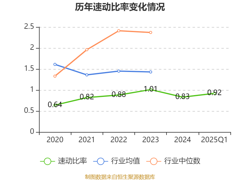 2025年第一季度,公司流动比率为1.36,速动比率为0.92。