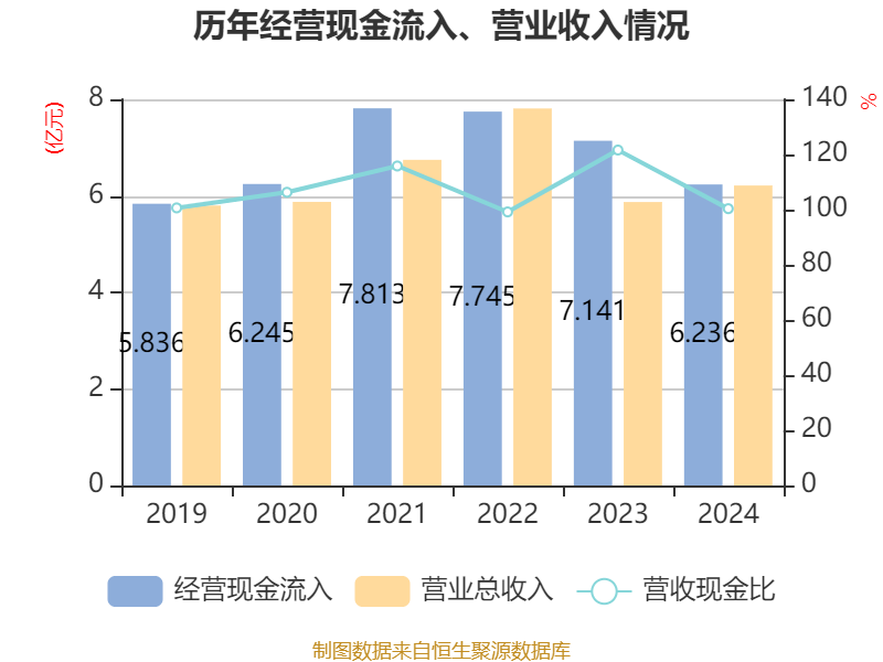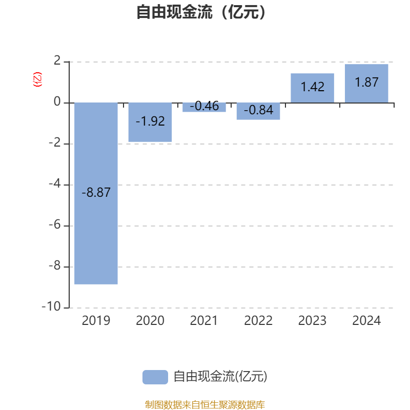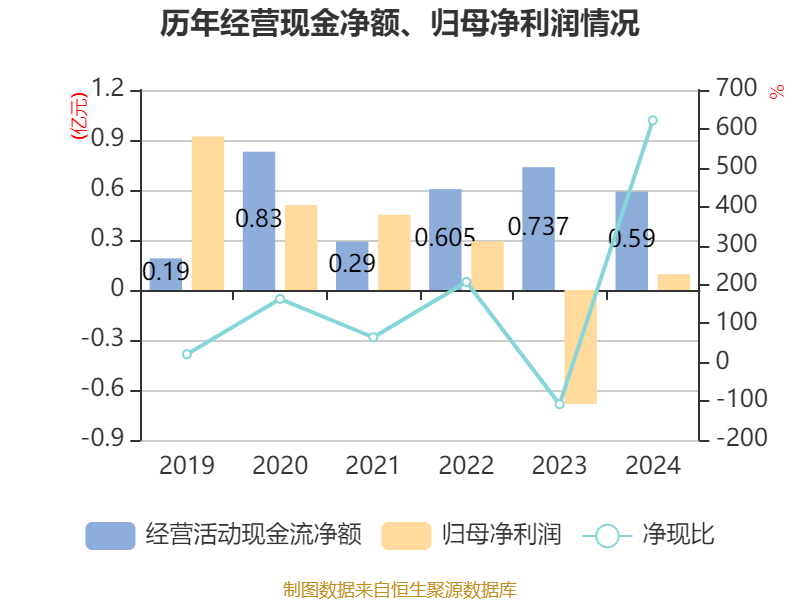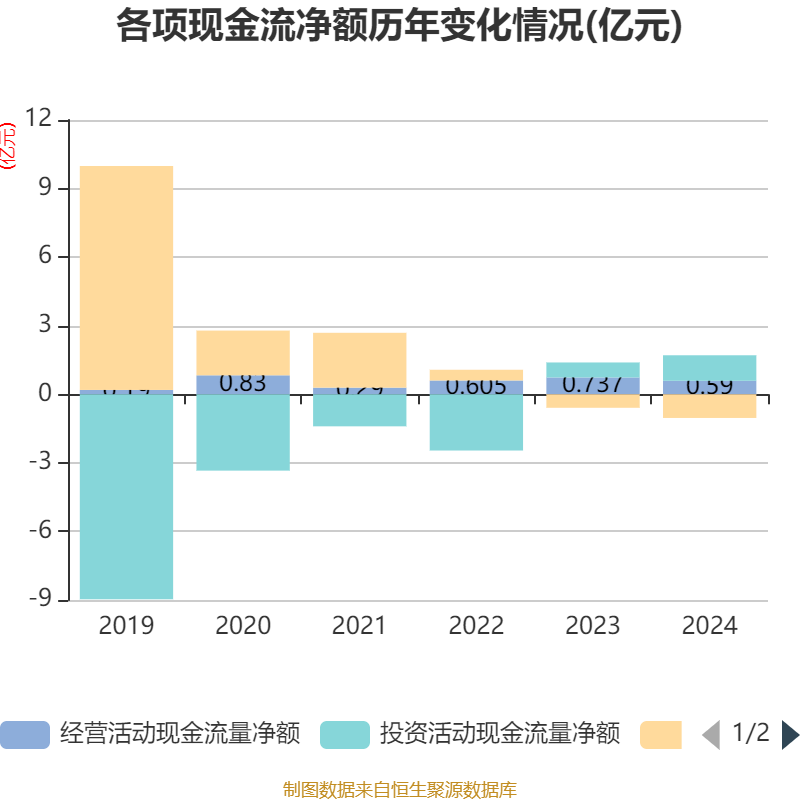 截至2024年,公司经营活动现金流净额为5904.4万元,同比下降19.89%;筹资活动现金流净额-1.04亿元,同比减少4451.59万元;投资活动现金流净额1.12亿元,上年同期为6552.29万元。