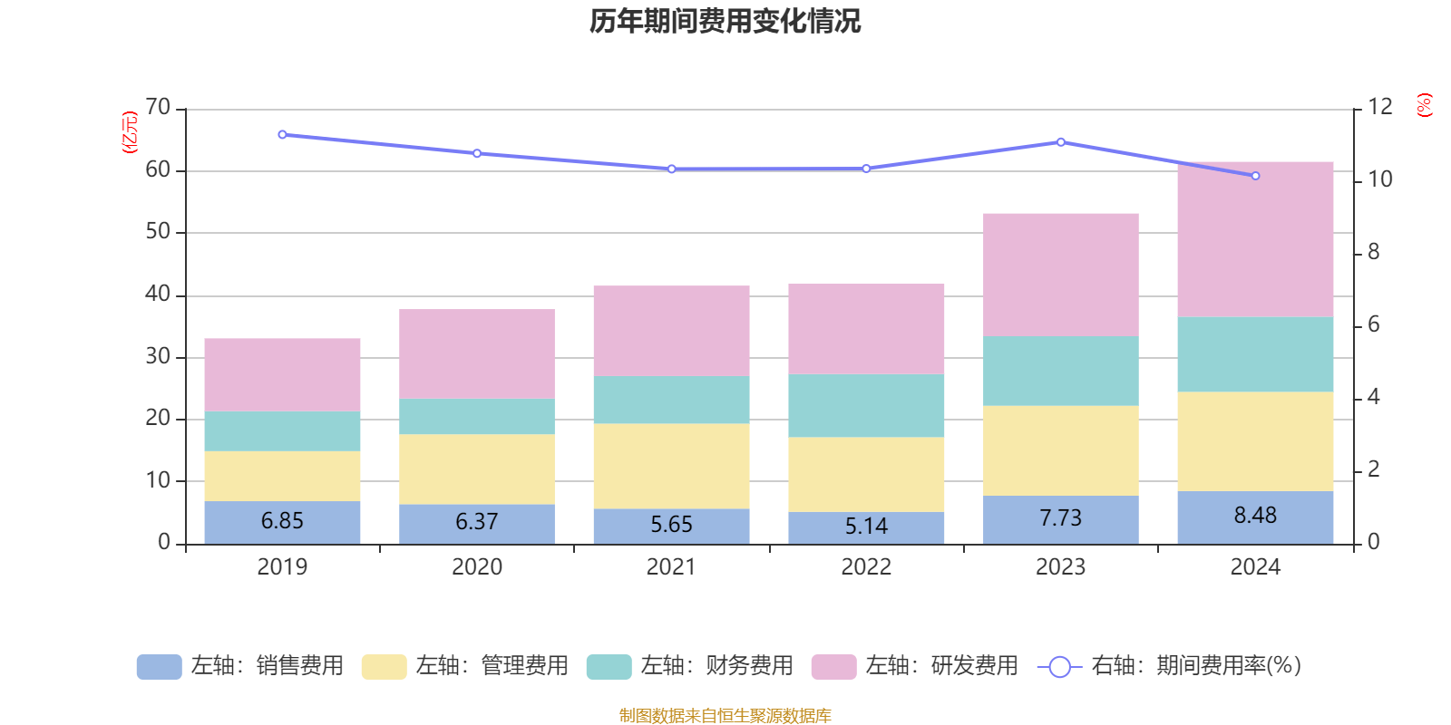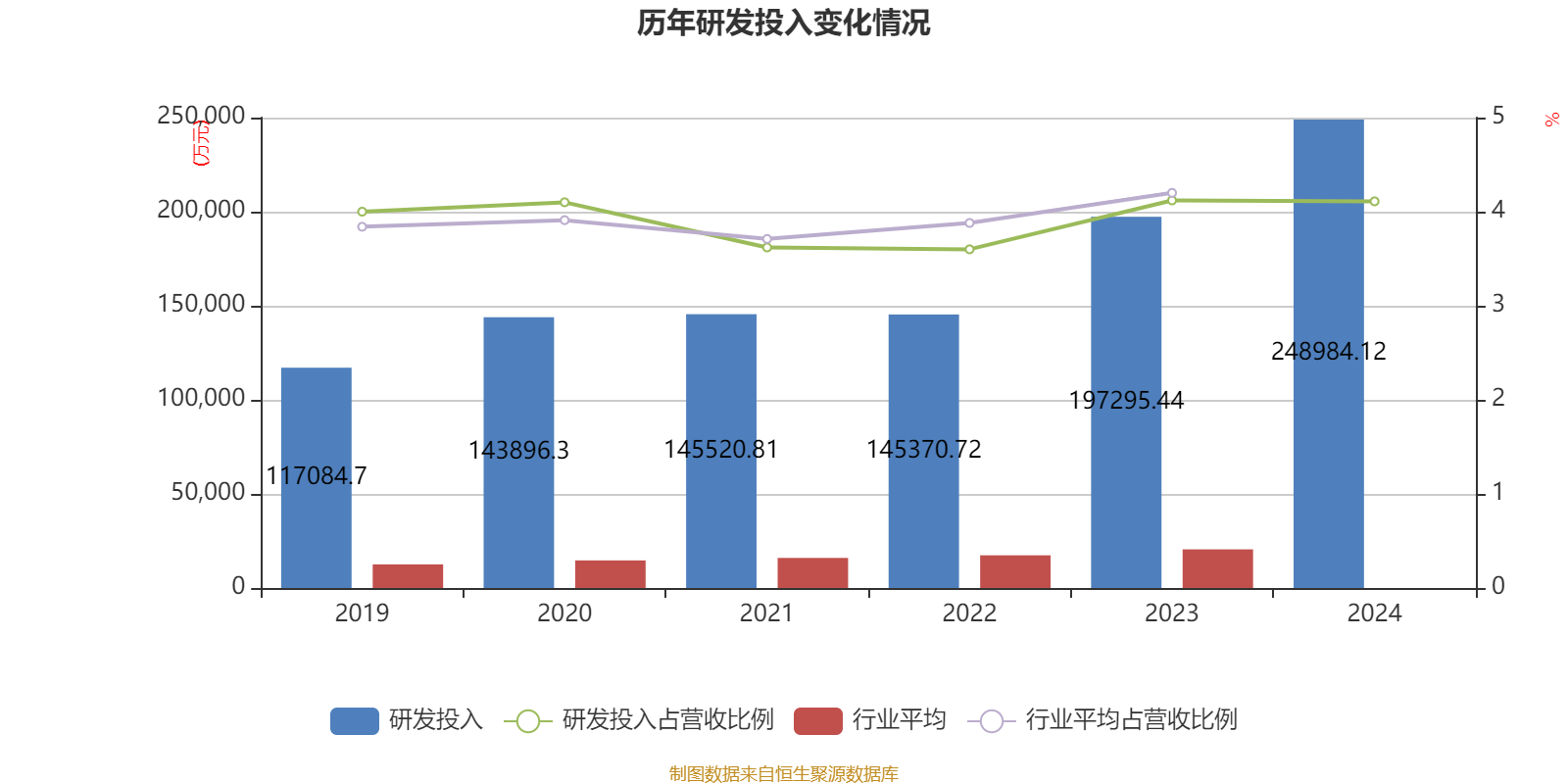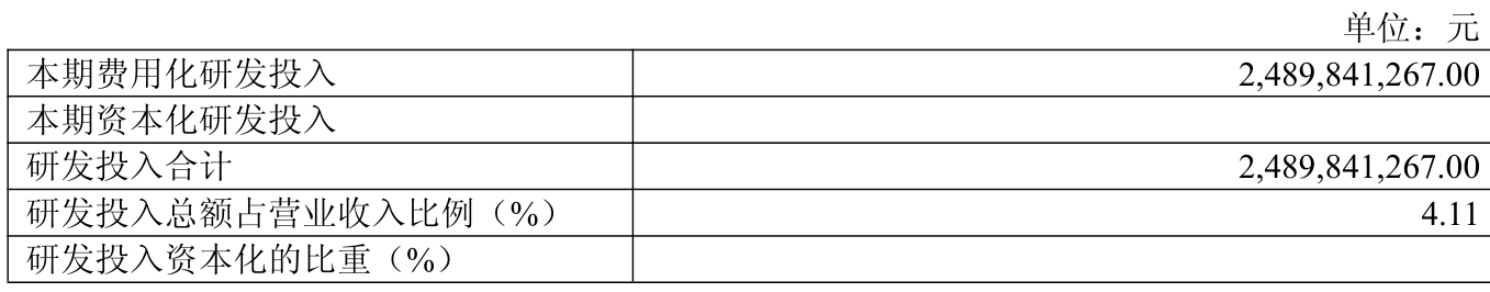 2024年全年,公司研发投入金额为24.9亿元,同比增长26.2%;研发投入占营业收入比例为4.11%,相比上年同期下降0.01个百分点。此外,公司全年研发投入资本化率为0%。