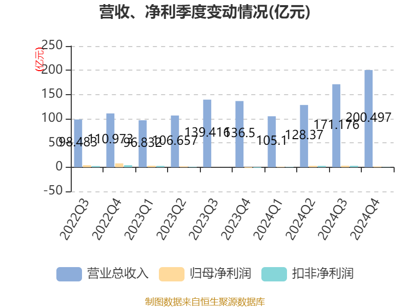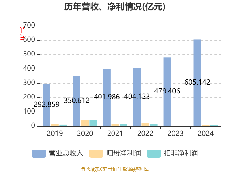 中证智能财讯金发科技(600143)4月22日披露2024年年度报告。2024年,公司实现营业总收入605.14亿元,同比增长26.23%;归母净利润8.25亿元,同比增长160.36%;扣非净利润6.75亿元,同比增长240.13%;经营活动产生的现金流量净额为28.45亿元,同比增长18.24%;报告期内,金发科技基本每股收益为0.312元,加权平均净资产收益率为4.83%。公司2024年度分配预案为:拟向全体股东每10股派现1元(含税)。
