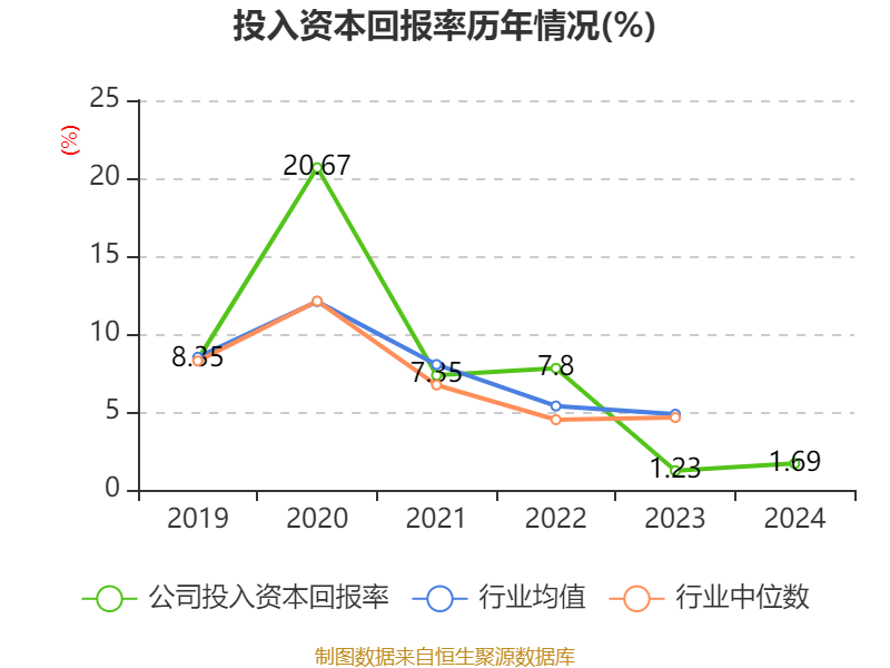 数据显示,2024年公司加权平均净资产收益率为4.83%,较上年同期上升2.9个百分点。公司2024年投入资本回报率为1.69%,较上年同期上升0.46个百分点。