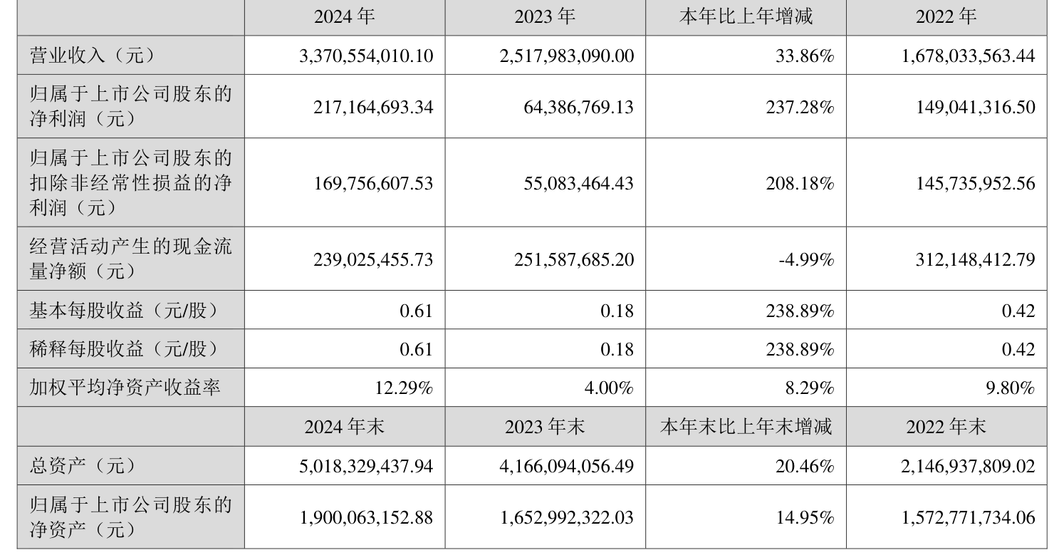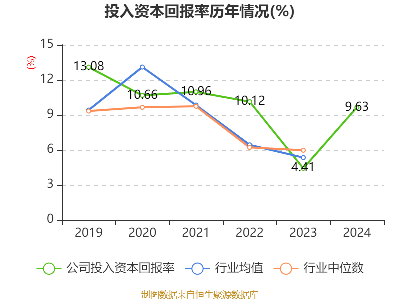 数据显示,2024年公司加权平均净资产收益率为12.29%,较上年同期上升8.29个百分点。公司2024年投入资本回报率为9.63%,较上年同期上升5.22个百分点。
