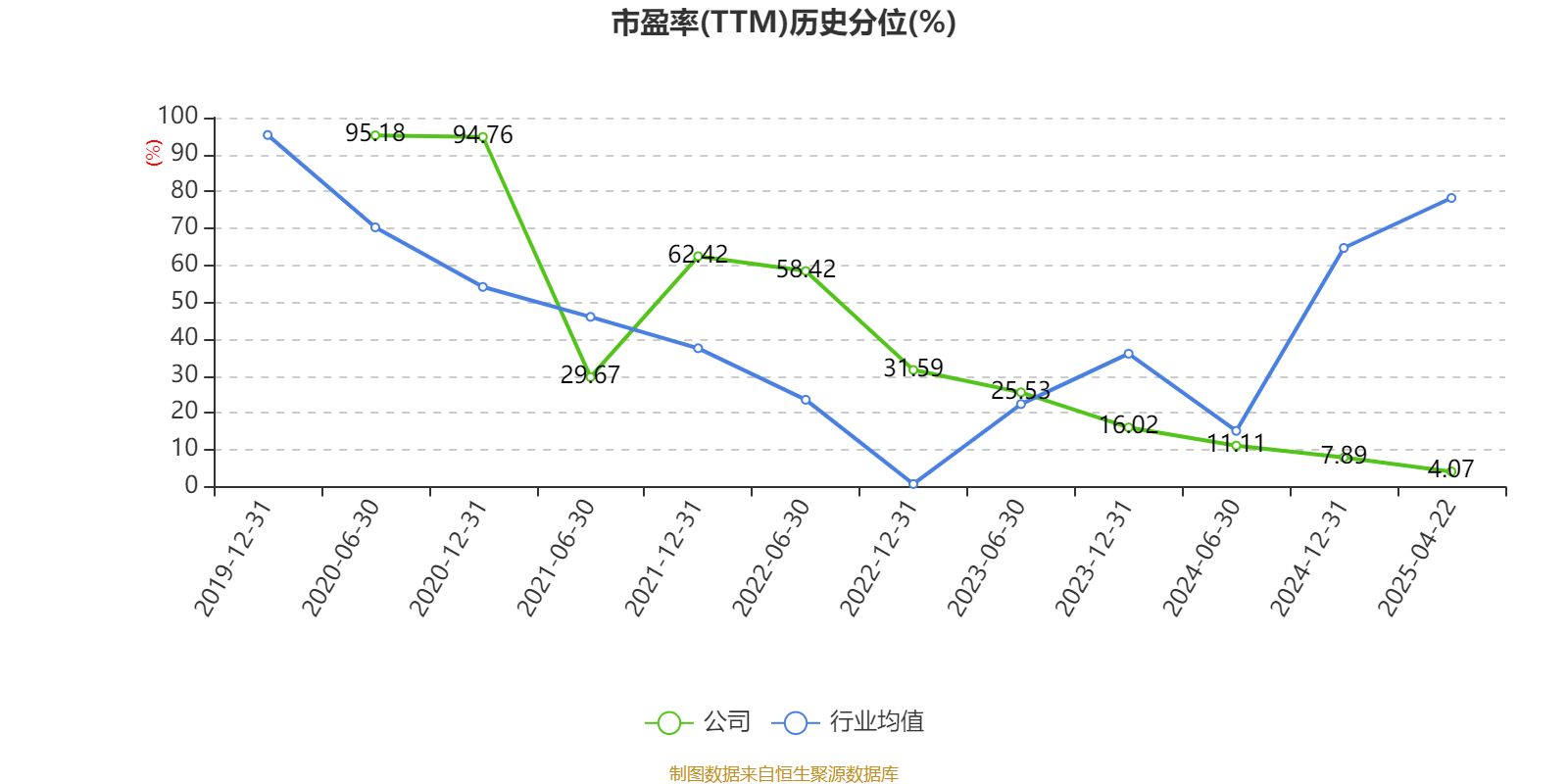 市盈率、市净率为负时,不显示当期分位数,会导致折线图中断。