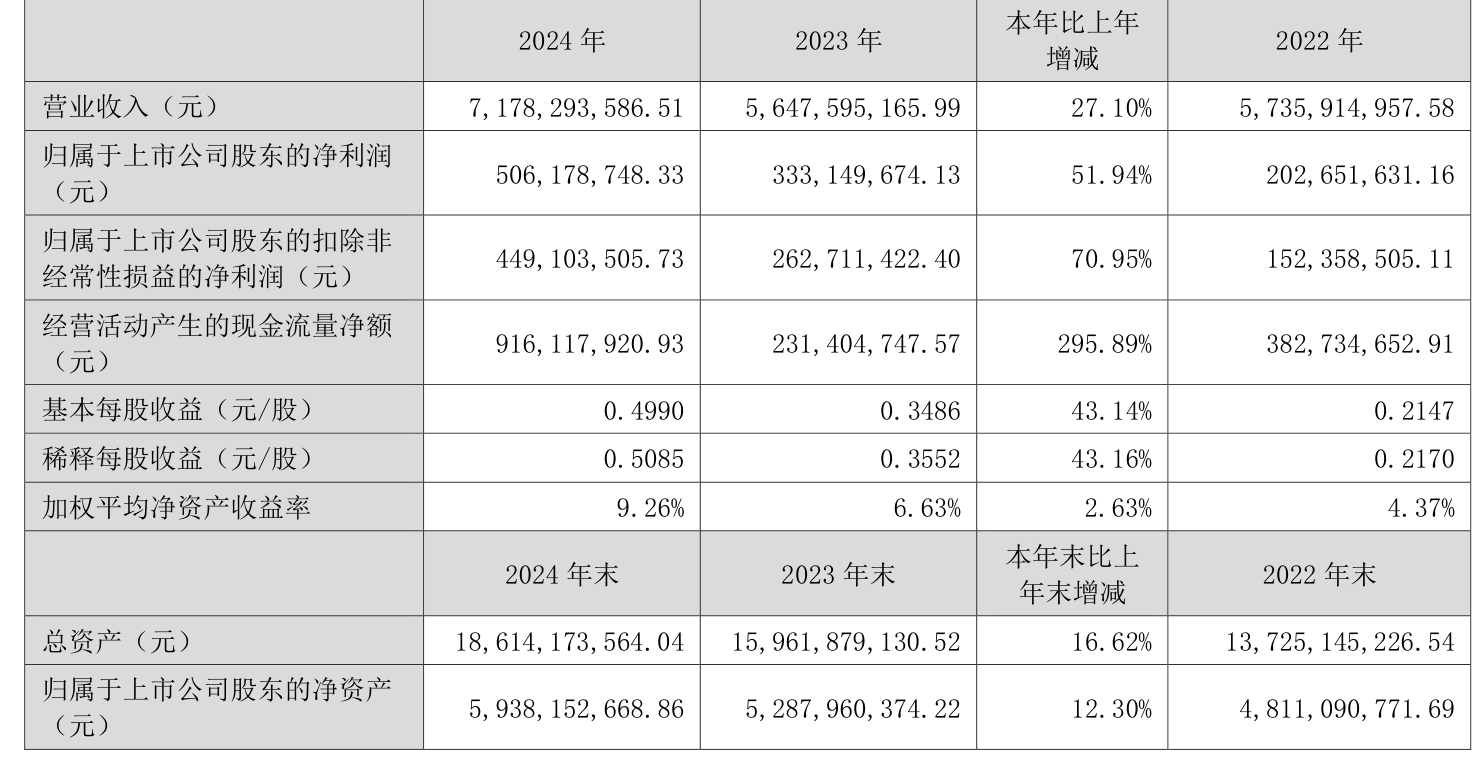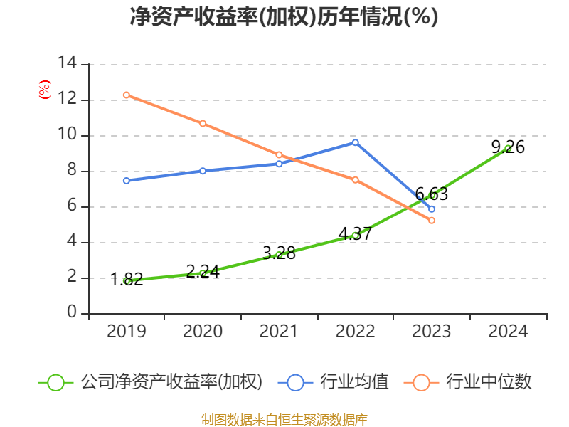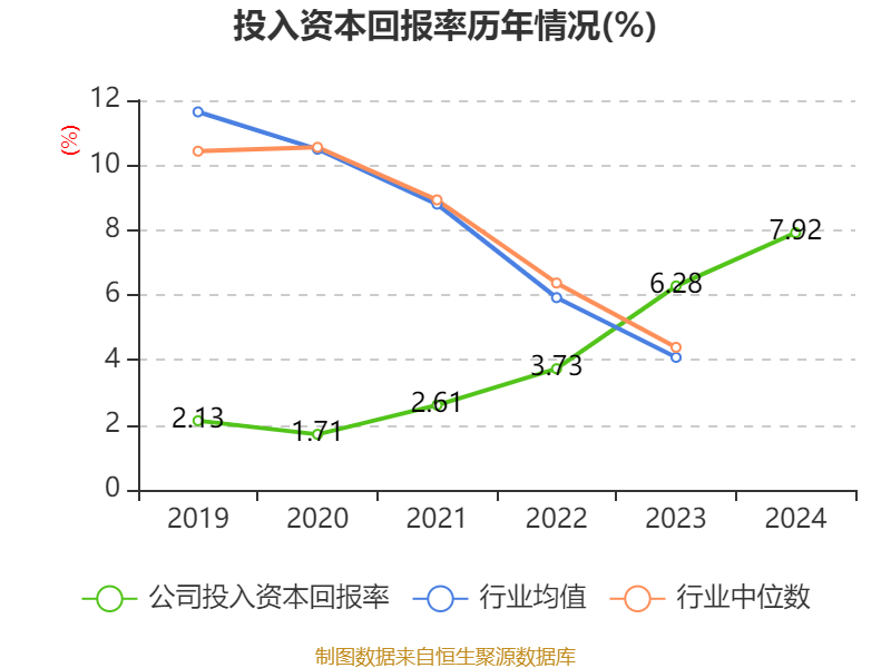 数据显示,2024年公司加权平均净资产收益率为9.26%,较上年同期上升2.63个百分点。公司2024年投入资本回报率为7.92%,较上年同期上升1.64个百分点。