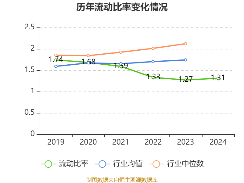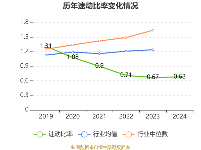 2024年,公司流动比率为1.31,速动比率为0.68。