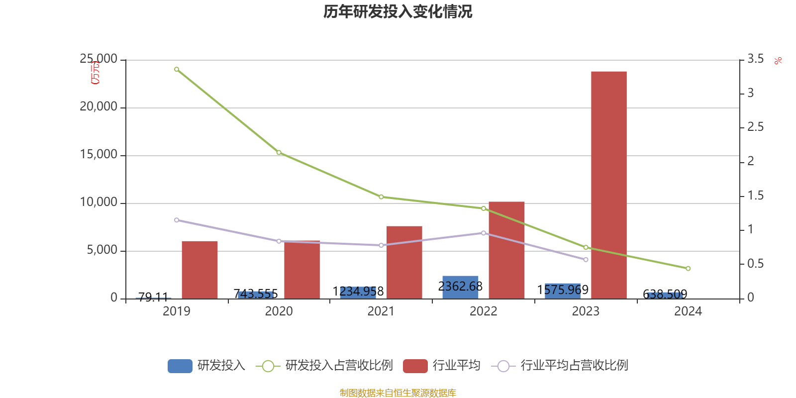 2024年全年,公司研发投入金额为638.51万元,同比下降59.48%;研发投入占营业收入比例为0.44%,相比上年同期下降0.31个百分点。此外,公司全年研发投入资本化率为65.7%。