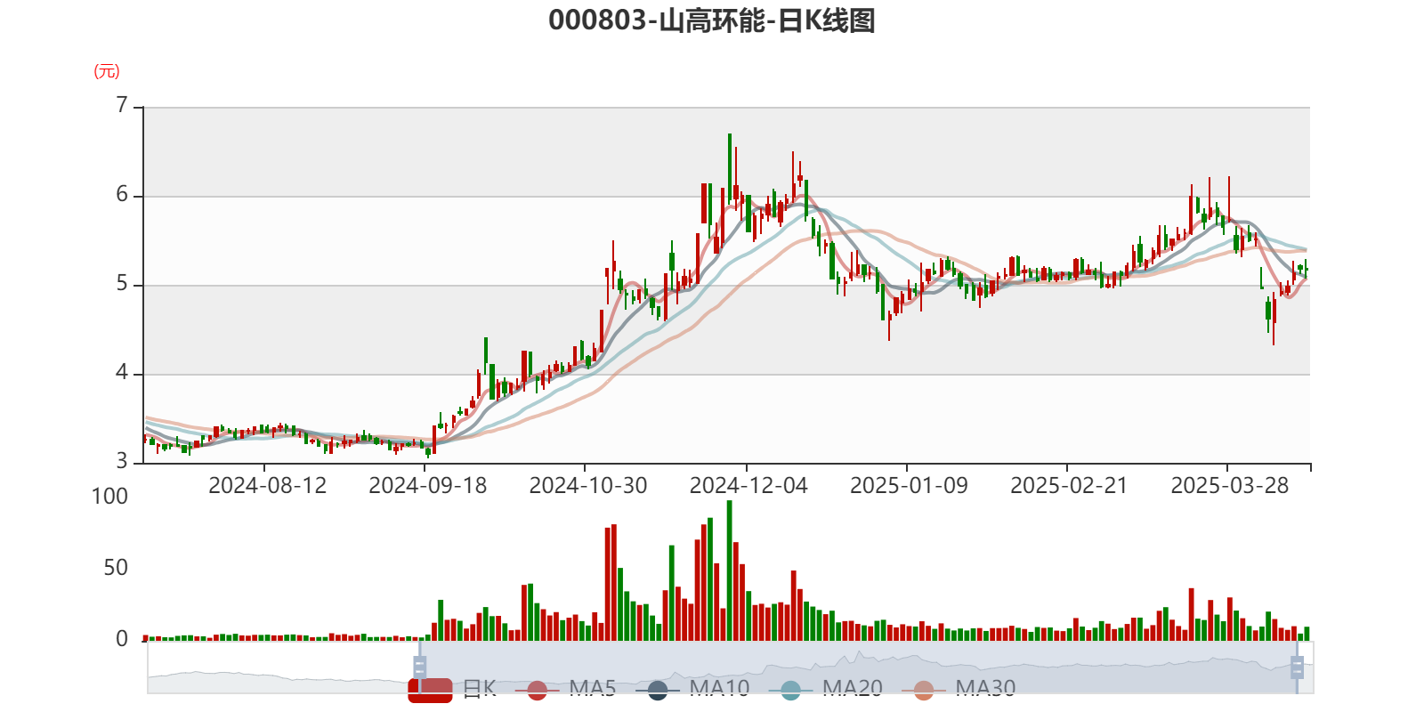 中证智能财讯山高环能(000803)4月23日披露2024年年度报告。2024年,公司实现营业总收入14.49亿元,同比下降31.04%;归母净利润1303.76万元,同比增长47.30%;扣非净利润525.49万元,同比扭亏;经营活动产生的现金流量净额为3.74亿元,同比下降51.47%;报告期内,山高环能基本每股收益为0.03元,加权平均净资产收益率为0.92%。