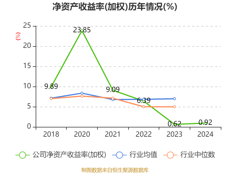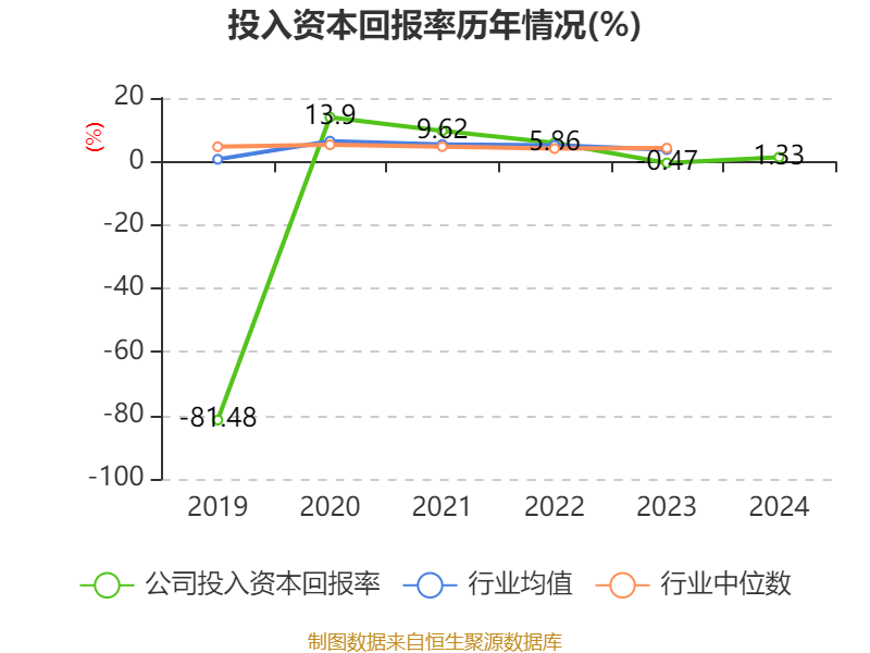 数据显示,2024年公司加权平均净资产收益率为0.92%,较上年同期上升0.3个百分点。公司2024年投入资本回报率为1.33%,较上年同期上升1.8个百分点。