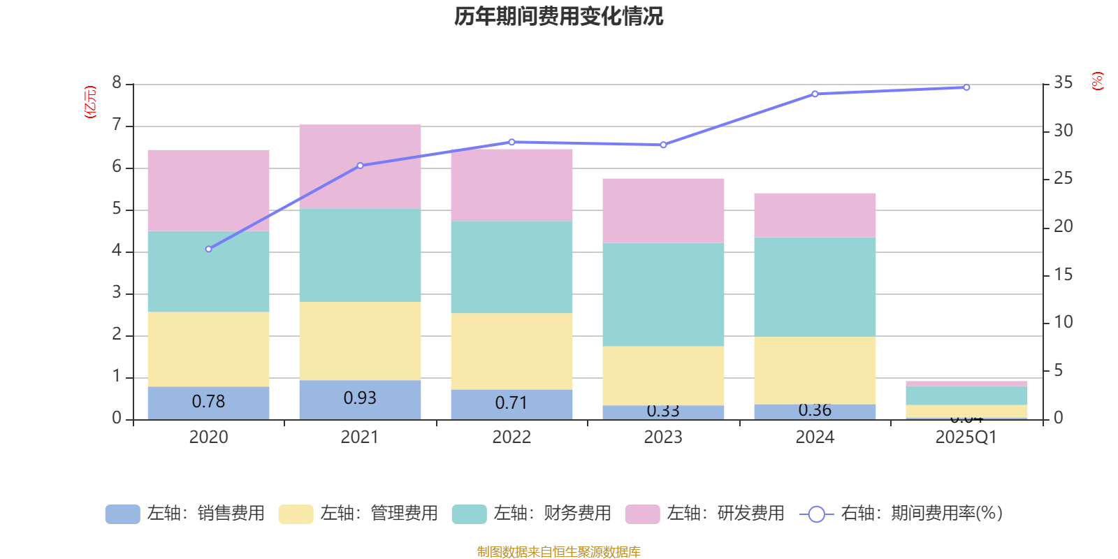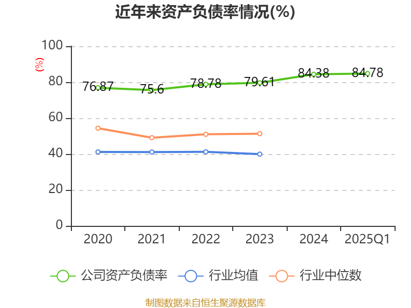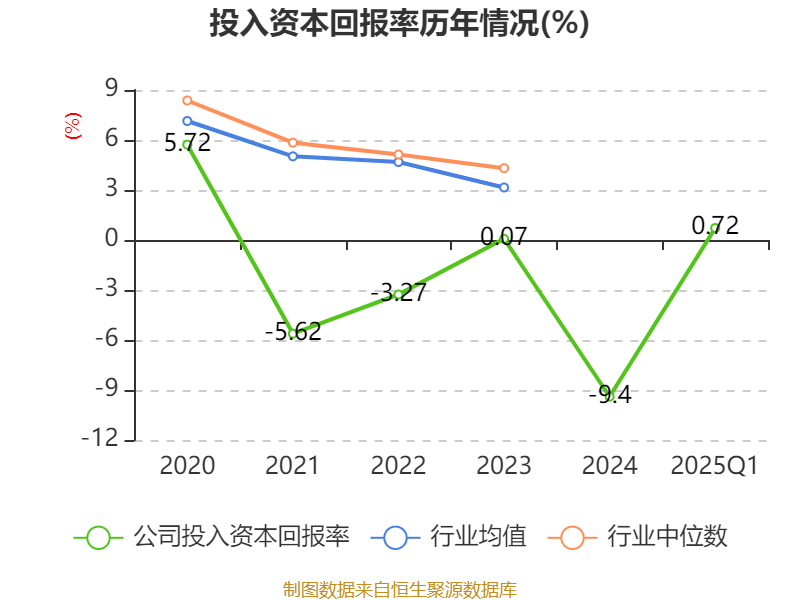 盈利能力方面, 2025年一季度公司加权平均净资产收益率为-0.8%,同比下降3.99个百分点。公司2025年第一季度投入资本回报率为0.72%,较上年同期下降1.1个百分点。