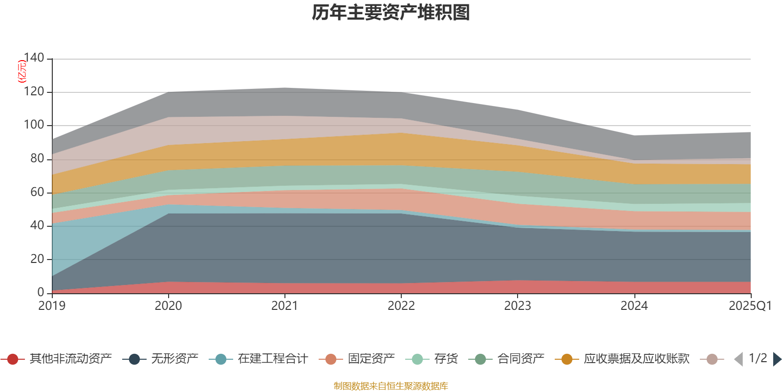 负债重大变化方面,截至2025年一季度末,公司合同负债较上年末增加21.16%,占公司总资产比重上升1.37个百分点;应付票据及应付账款较上年末减少2.8%,占公司总资产比重下降1.17个百分点;其他流动负债较上年末增加18.33%,占公司总资产比重上升1.03个百分点;一年内到期的非流动负债较上年末减少13.08%,占公司总资产比重下降0.57个百分点。