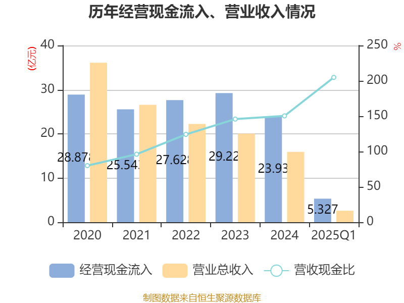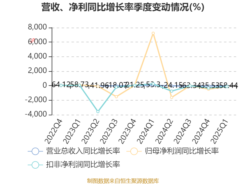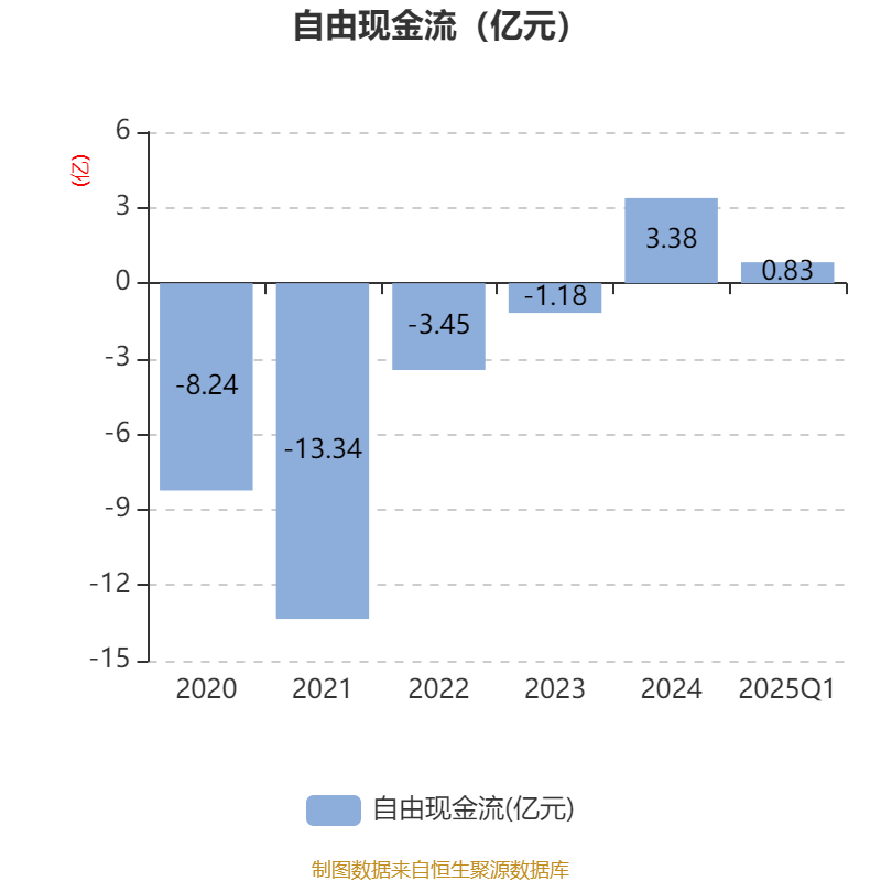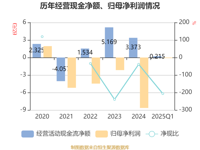 截至2025年一季度末,公司经营活动现金流净额为2153.21万元,同比下降89%;筹资活动现金流净额1.09亿元,同比增加2.51亿元;投资活动现金流净额-971.96万元,上年同期为4774.29万元。