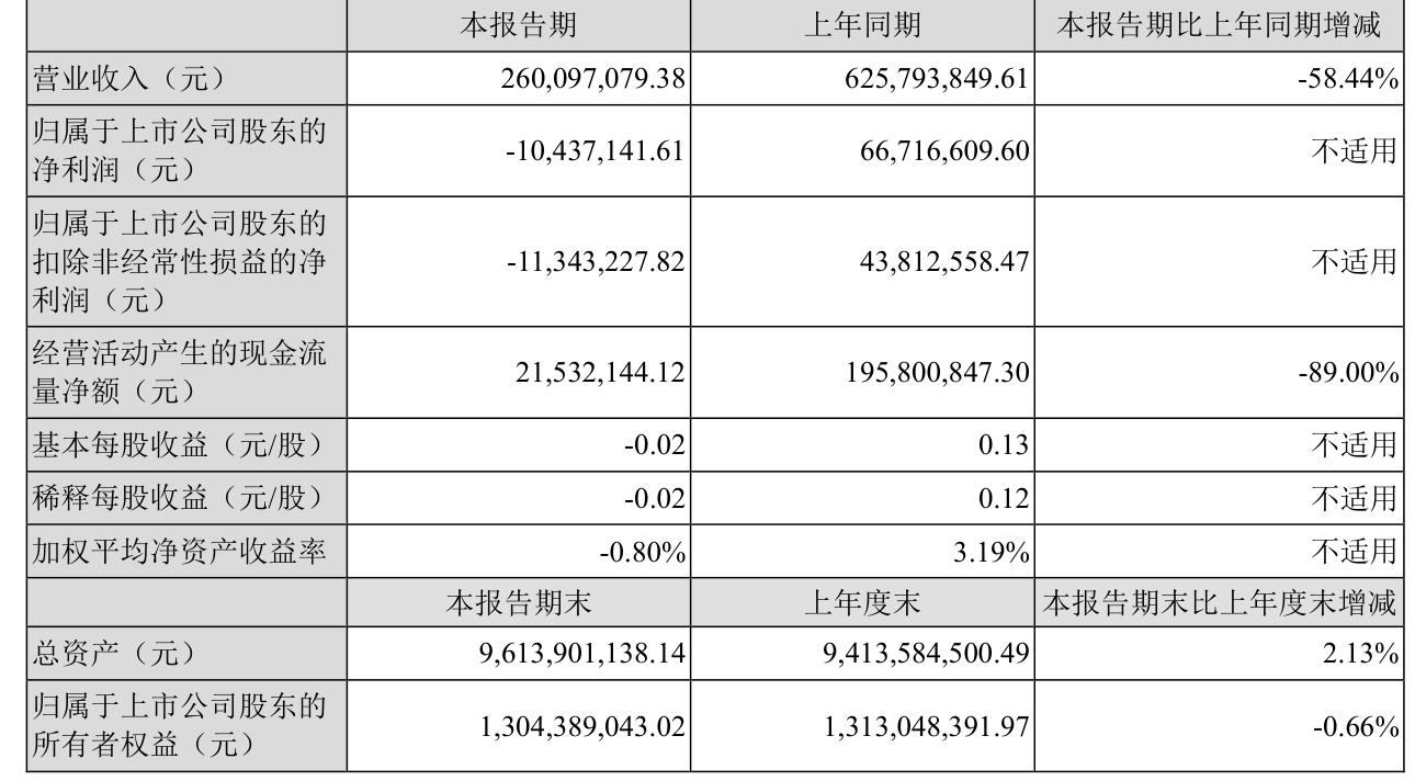 中证智能财讯博世科(维权)(300422)4月23日披露2025年第一季度报告。公司实现营业总收入2.6亿元,同比下降58.44%;归母净利润亏损1043.71万元,上年同期盈利6671.66万元;扣非净利润亏损1134.32万元,上年同期盈利4381.26万元;经营活动产生的现金流量净额为2153.21万元,同比下降89.00%;报告期内,博世科基本每股收益为-0.02元,加权平均净资产收益率为-0.80%。