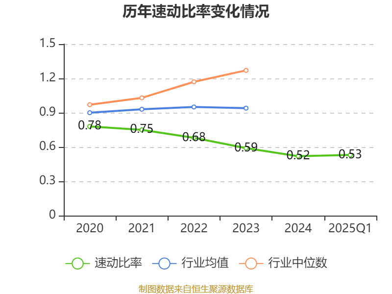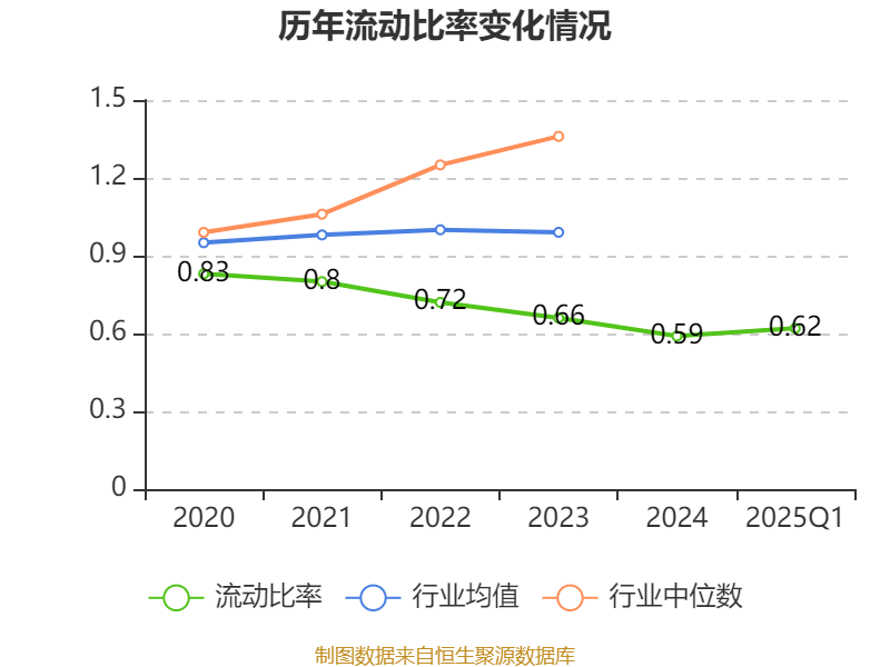 2025年第一季度,公司流动比率为0.62,速动比率为0.53。