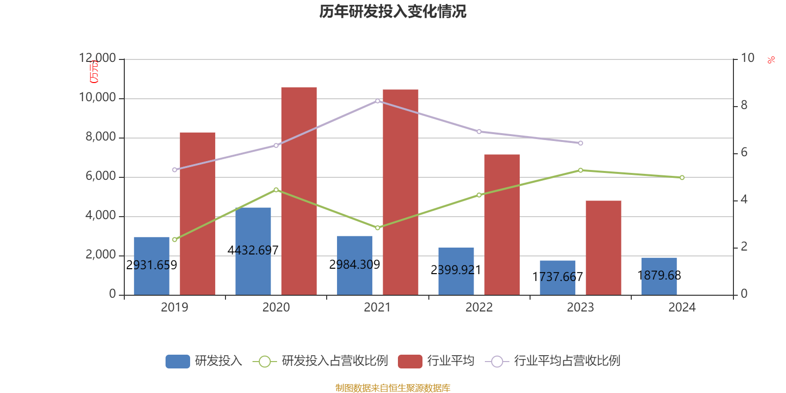 2024年全年,公司研发投入金额为1879.68万元,同比增长8.17%;研发投入占营业收入比例为4.97%,相比上年同期下降0.31个百分点。此外,公司全年研发投入资本化率为37.2%。