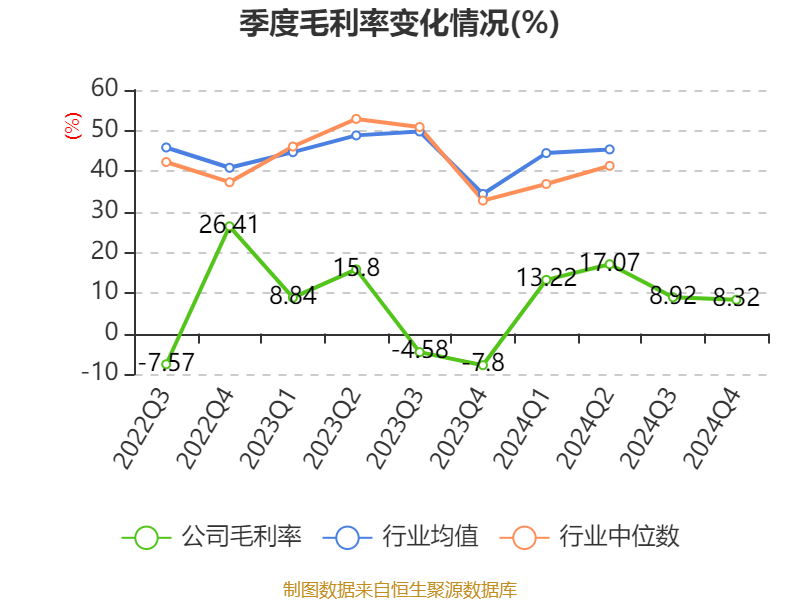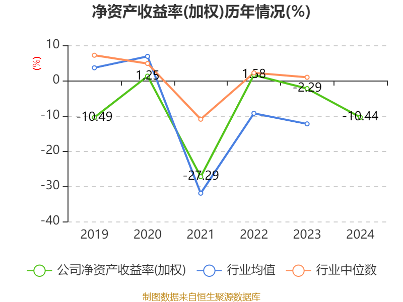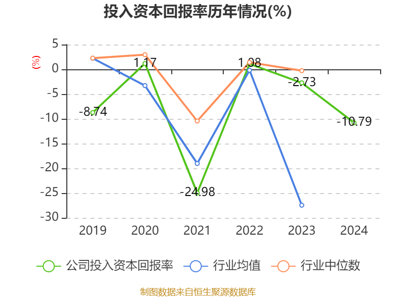 数据显示,2024年公司加权平均净资产收益率为-10.44%,较上年同期下降8.15个百分点。公司2024年投入资本回报率为-10.79%,较上年同期下降8.06个百分点。
