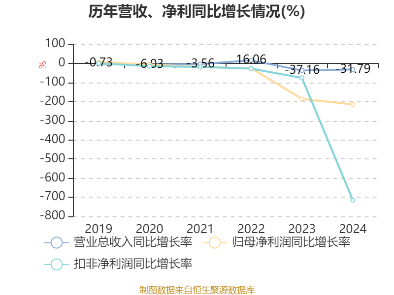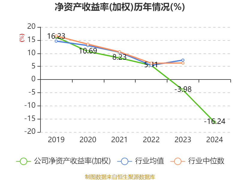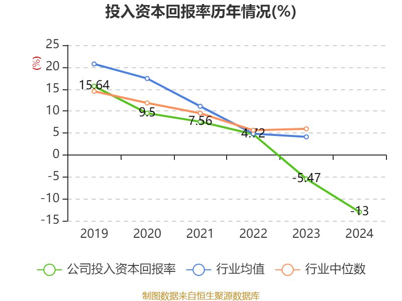 数据显示,2024年公司加权平均净资产收益率为-16.24%,较上年同期下降12.26个百分点。公司2024年投入资本回报率为-13%,较上年同期下降7.53个百分点。
