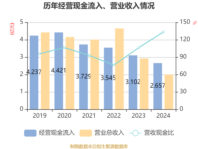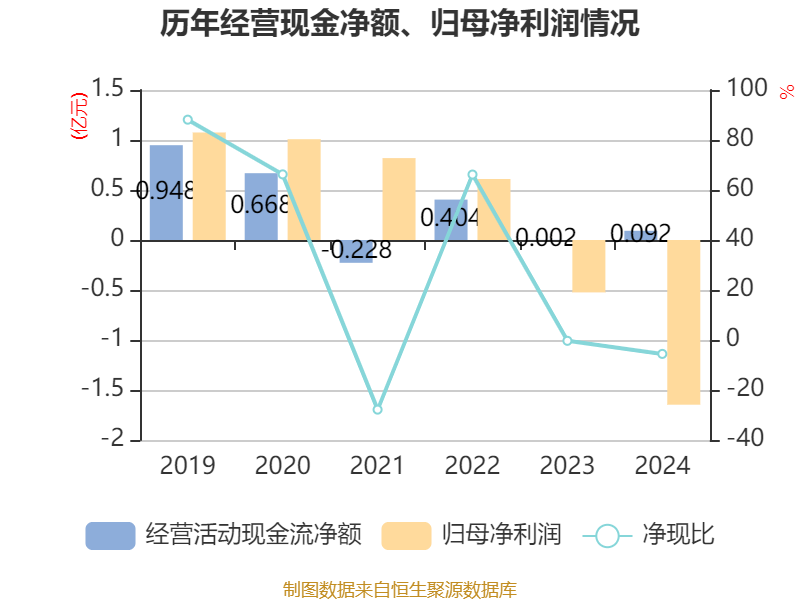 截至2024年,公司经营活动现金流净额为915.02万元,同比增长5150.69%;筹资活动现金流净额181.78万元,同比增加5051.67万元;投资活动现金流净额-2.04亿元,上年同期为1.16亿元。