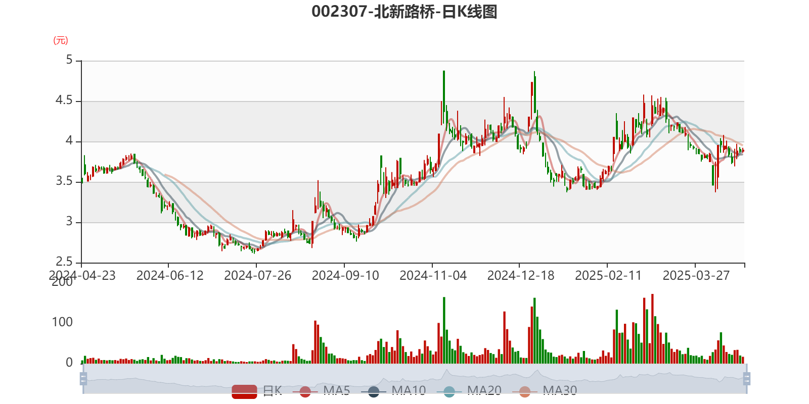 中证智能财讯北新路桥(002307)4月23日披露2024年年度报告。2024年,公司实现营业总收入102.15亿元,同比增长20.37%;归母净利润亏损4.23亿元,上年同期盈利3222.71万元;扣非净利润亏损4.8亿元,上年同期亏损70.59万元;经营活动产生的现金流量净额为-1.59亿元,上年同期为5.79亿元;报告期内,北新路桥基本每股收益为-0.35元,加权平均净资产收益率为-0.13%。