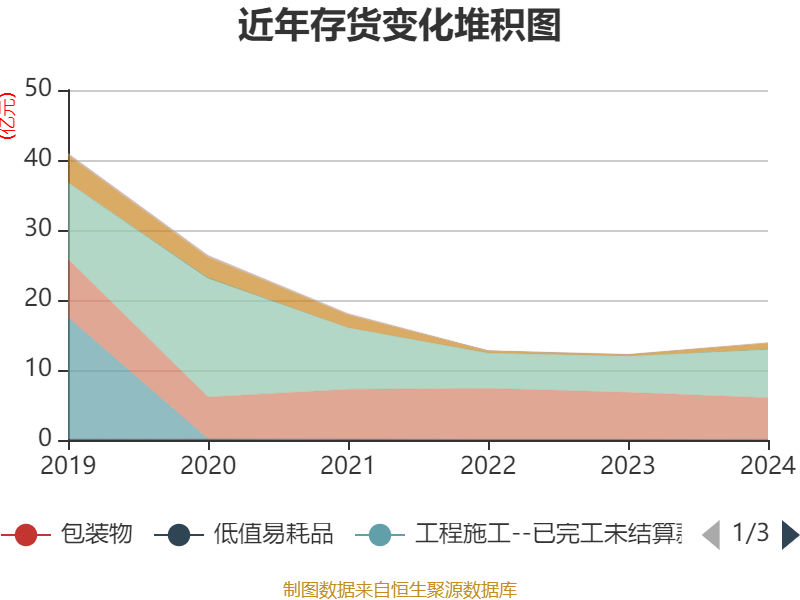 从存货变动来看,截至2024年末,公司存货账面价值为13.94亿元,占净资产的46.19%,较上年末增加1.68亿元。其中,存货跌价准备为1.17亿元,计提比例为7.75%。