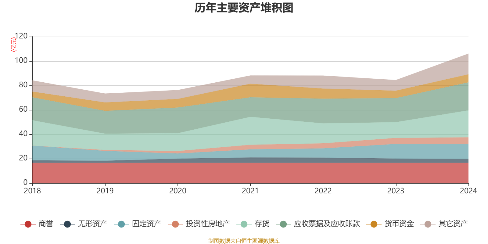 资产重大变化方面,截至2024年末,公司存货较上年末增加70.71%,占公司总资产比重上升5.49个百分点;一年内到期的非流动资产占公司总资产的4.05%,上年末为0;商誉较上年末增加0.18%,占公司总资产比重下降3.98个百分点;固定资产较上年末增加2.73%,占公司总资产比重下降2.6个百分点。