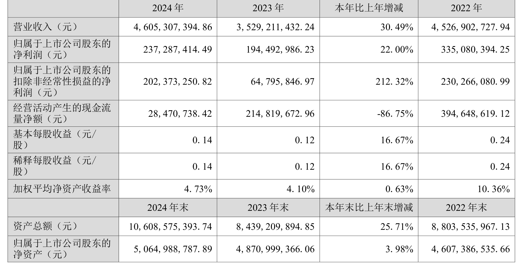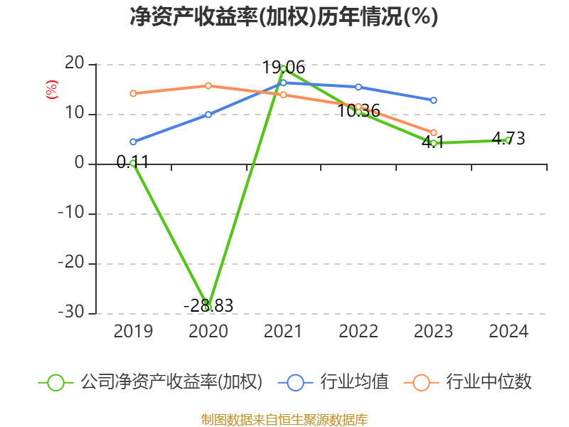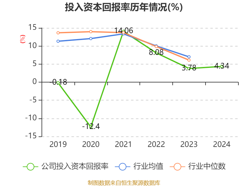 数据显示,2024年公司加权平均净资产收益率为4.73%,较上年同期上升0.63个百分点。公司2024年投入资本回报率为4.34%,较上年同期上升0.56个百分点。