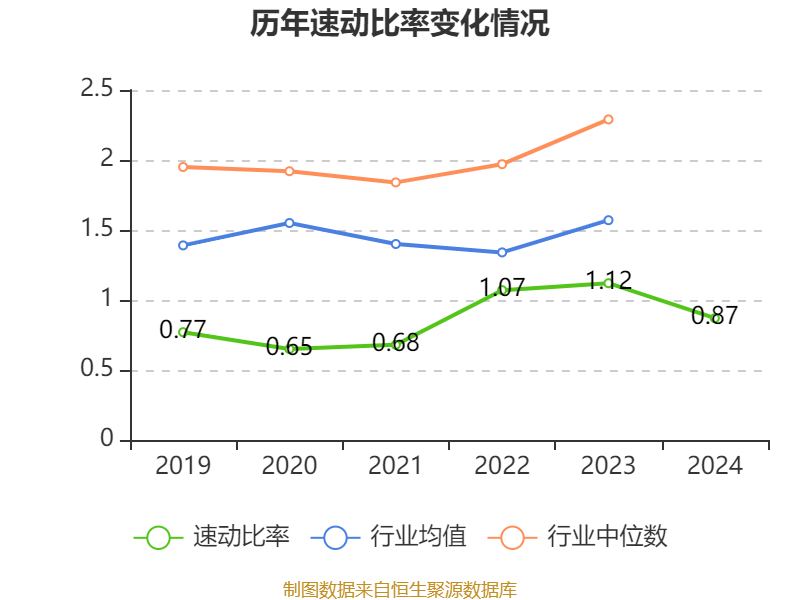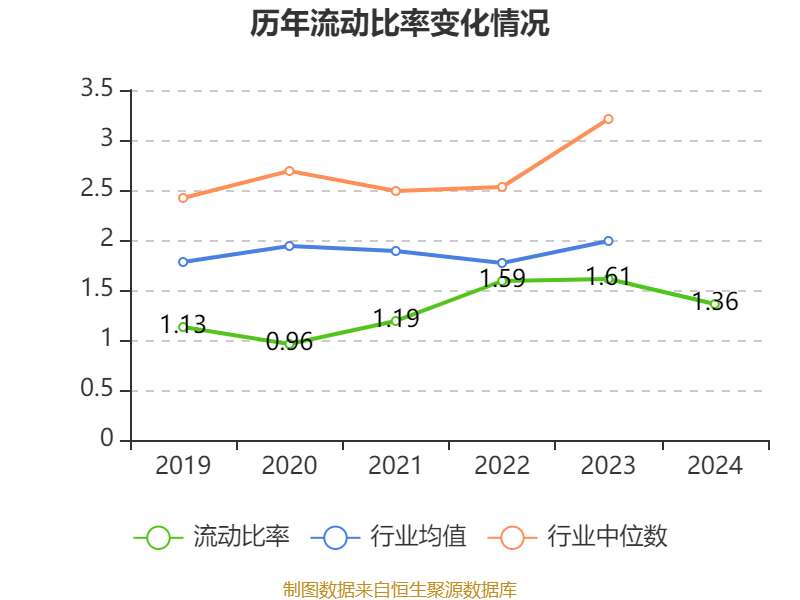 2024年,公司流动比率为1.36,速动比率为0.87。