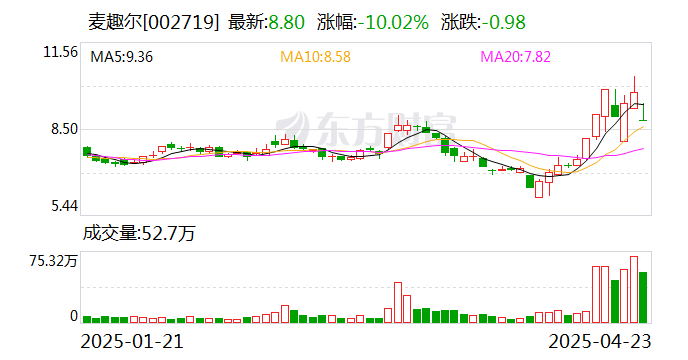 2025年4月22日,麦趣尔发布了2022年员工持股计划第三个解锁期业绩考核未达成的公告。此外,麦趣尔2024年亏损达到2.30亿元,这已经是公司连续第三年亏损了。麦趣尔在4月22日发布2024年年报后,在今日股价跌停。